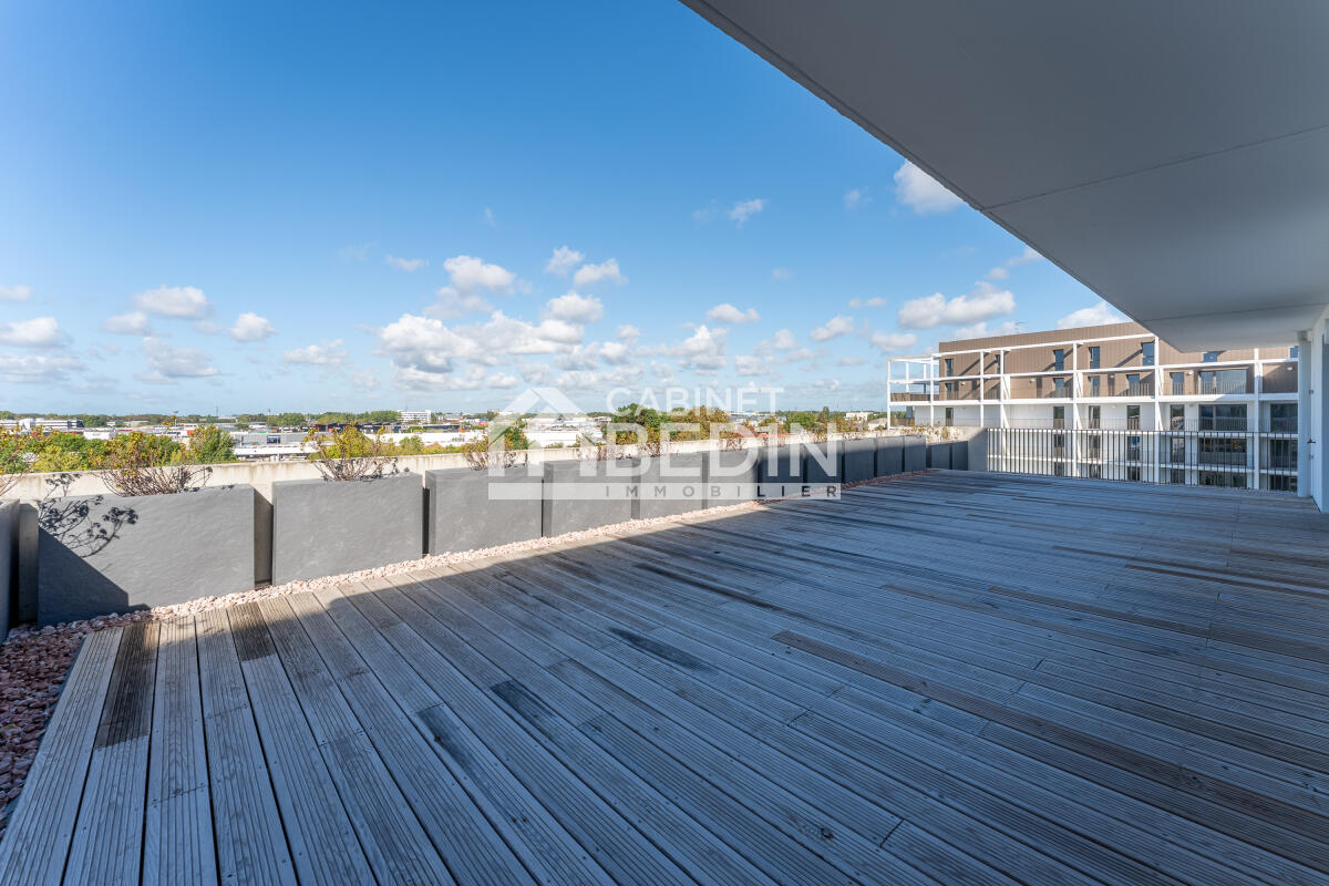 Exclusivité CABINET BEDIN - MERIGNAC. Dans une résidence de 2023, venez visiter ce magnifique appartement et sa terrasse de 100 m².