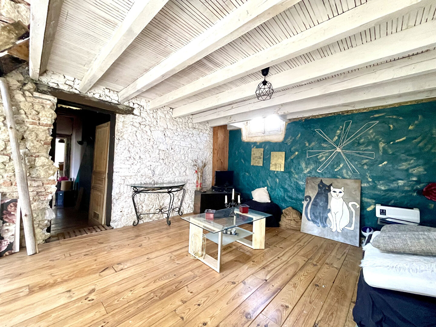 Un dégagement mène à une autre partie de la maison pouvant être dissociée en appartement indépendant, se composant d'une pièce de vie avec cuisine ouverte, d'une salle d'eau, d'un séjour au 1er étage et d'une chambre en mezzanine,