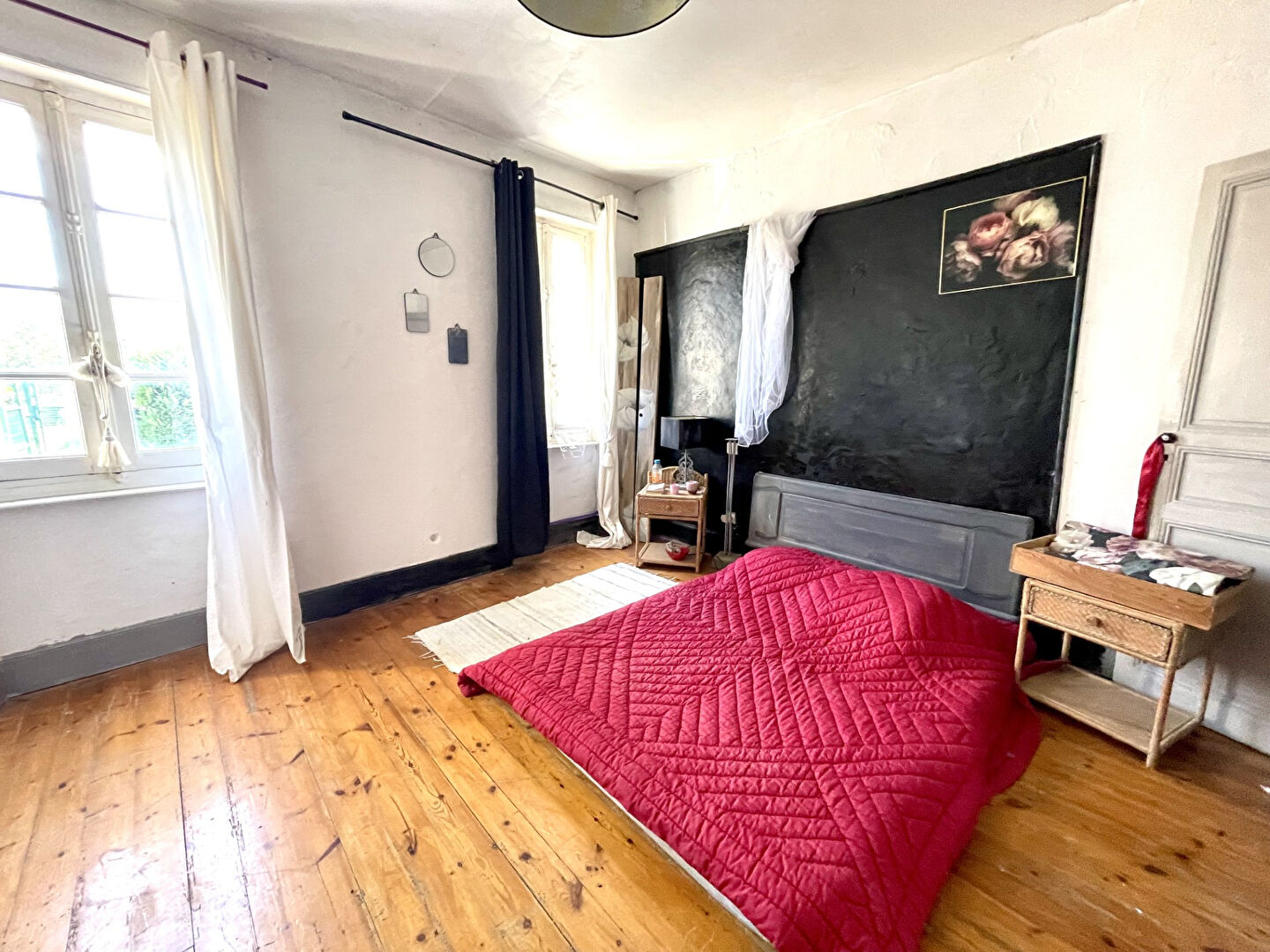 Travaux à prévoir mais beaucoup de charme, cheminées, tomettes, poutres et pierres apparentes, ..., Un grenier aménageable complète l'ensemble.