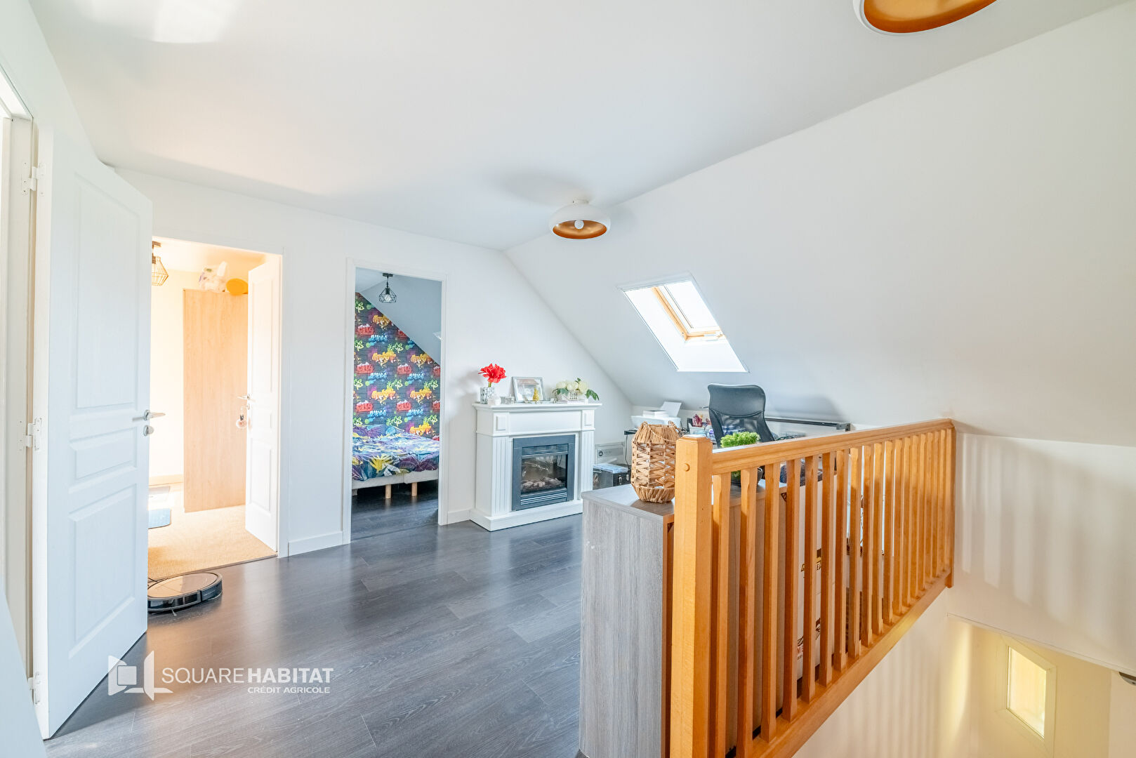 - à l'étage: une mezzanine, une chambre spacieuse avec rangements, une salle de bains avec wc, et deux autres chambres.