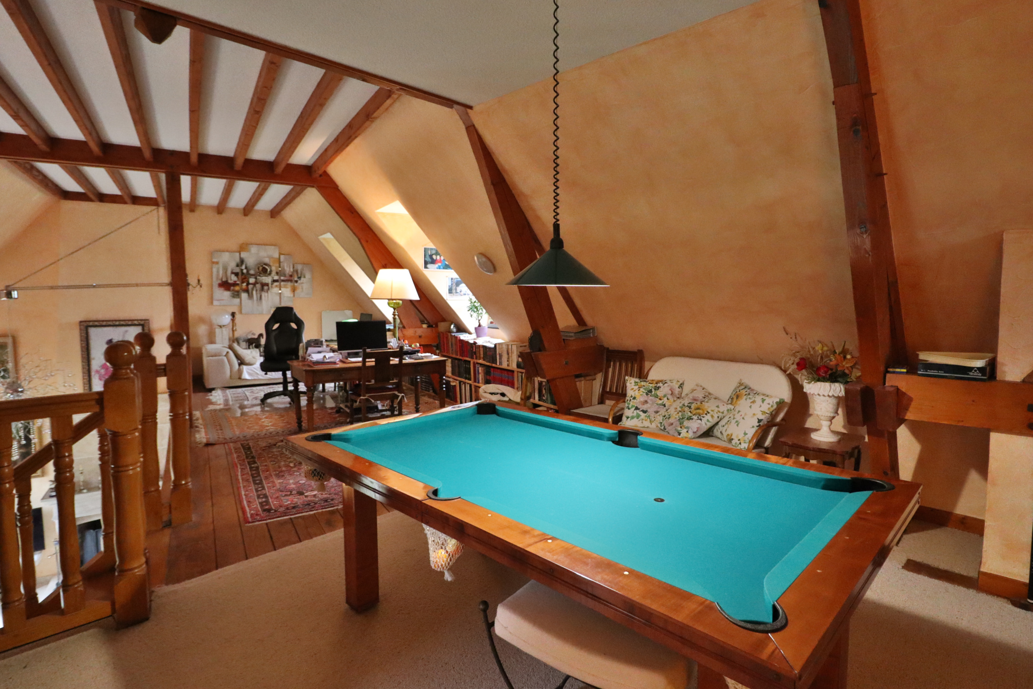À l'étage, une belle mezzanine dessert deux chambres ainsi qu'une salle d'eau avec WC.