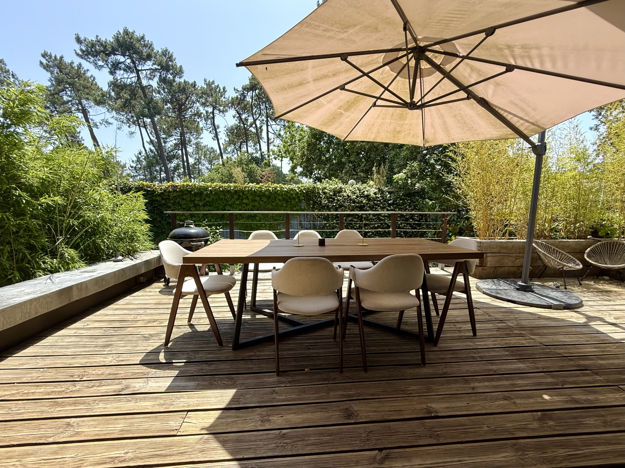 Pour compléter ce bien, de belles terrasses orientées plein sud vous permettent de profiter de la lumière naturelle et de quelques aperçus sur le golf d'Arcachon, créant ainsi un cadre de vie paisible et ensoleillé.