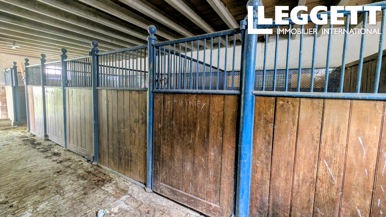 L'ensemble comprend plusieurs bâtiments de caractère : écuries avec boxes anciens, ancienne sellerie, forge, logements à restaurer, cour intérieure close, paddock et prairie attenants. De l'autre côté de la route, trois grandes parcelles de prairies complètent ce bien rare.