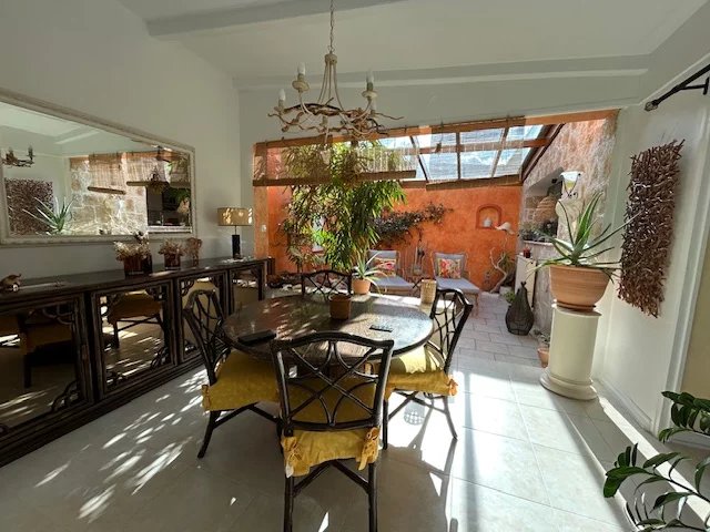 Un air de Provence pour cette charmante maison de plain-pied édifiée sur son terrain clos et arboré de 393 m² comprenant :