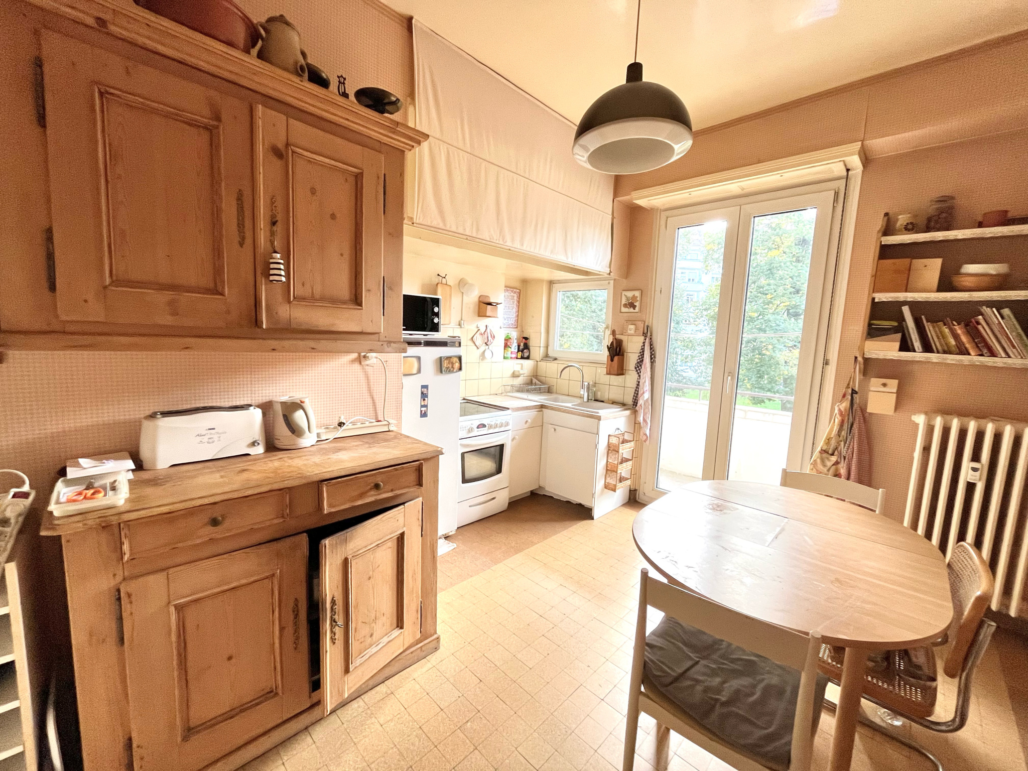 Situé au premier étage avec ascenseur d'une copropriété bien tenue, le logement se compose d'une grande entrée, de deux belles pièces à vivre de 20m2 chacune, d'une cuisine séparée, de deux chambres, d'une salle de bain, d'un WC séparé, d'un débarras et d'un balcon exposé sud-ouest.