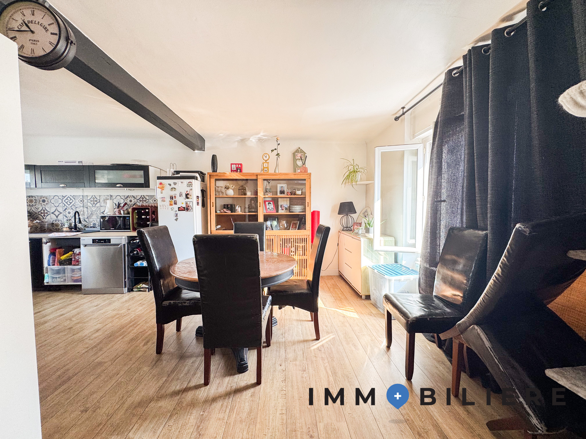 - au 1er et 2ème étage : un appartement duplex de 75 m2 (82 m2 au sol) en bon état, actuellement libre mais possibilité de louer env 850 EUR.