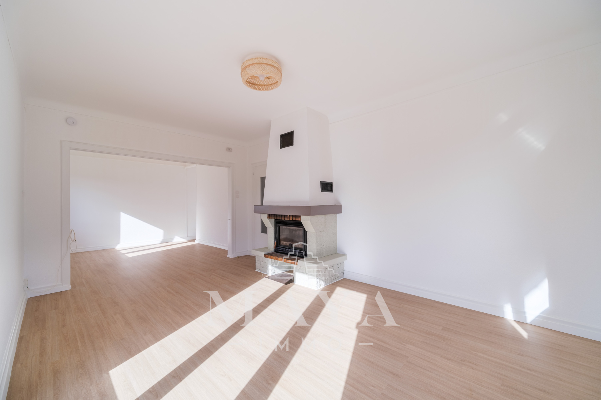 Elle dispose d'une entrée, une cuisine équipée, un double séjour de 32m2 avec une cheminée et un accès à la terrasse PLEIN SUD, une chambre, une salle d'eau et un WC séparé.