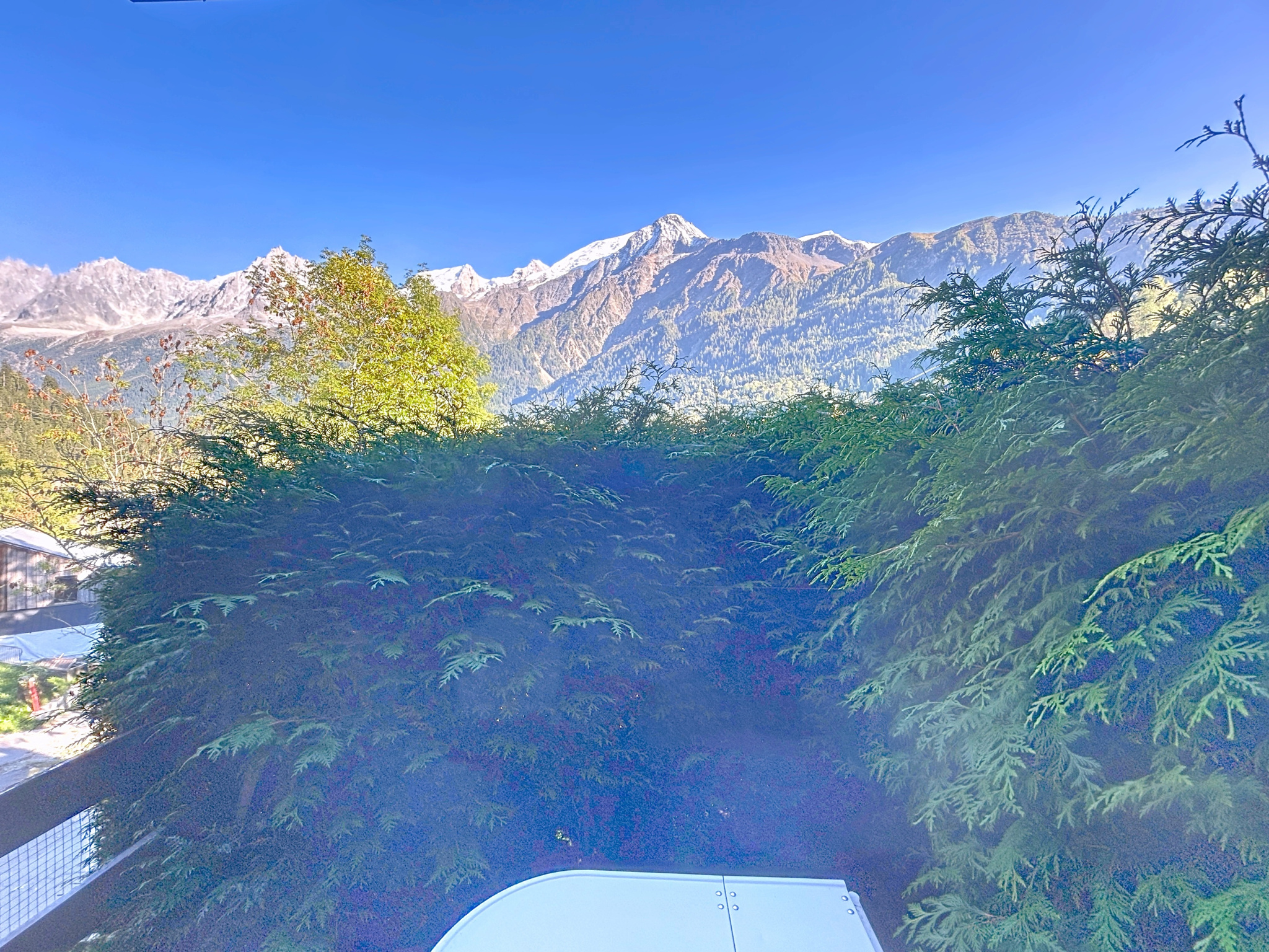 Ensuite, vous découvrirez une belle pièce de vie lumineuse avec kitchenette équipée, un coin salle à manger et un accès à la grande terrasse en bois offrant une vue imprenable sur la Chaîne du Mont-Blanc.