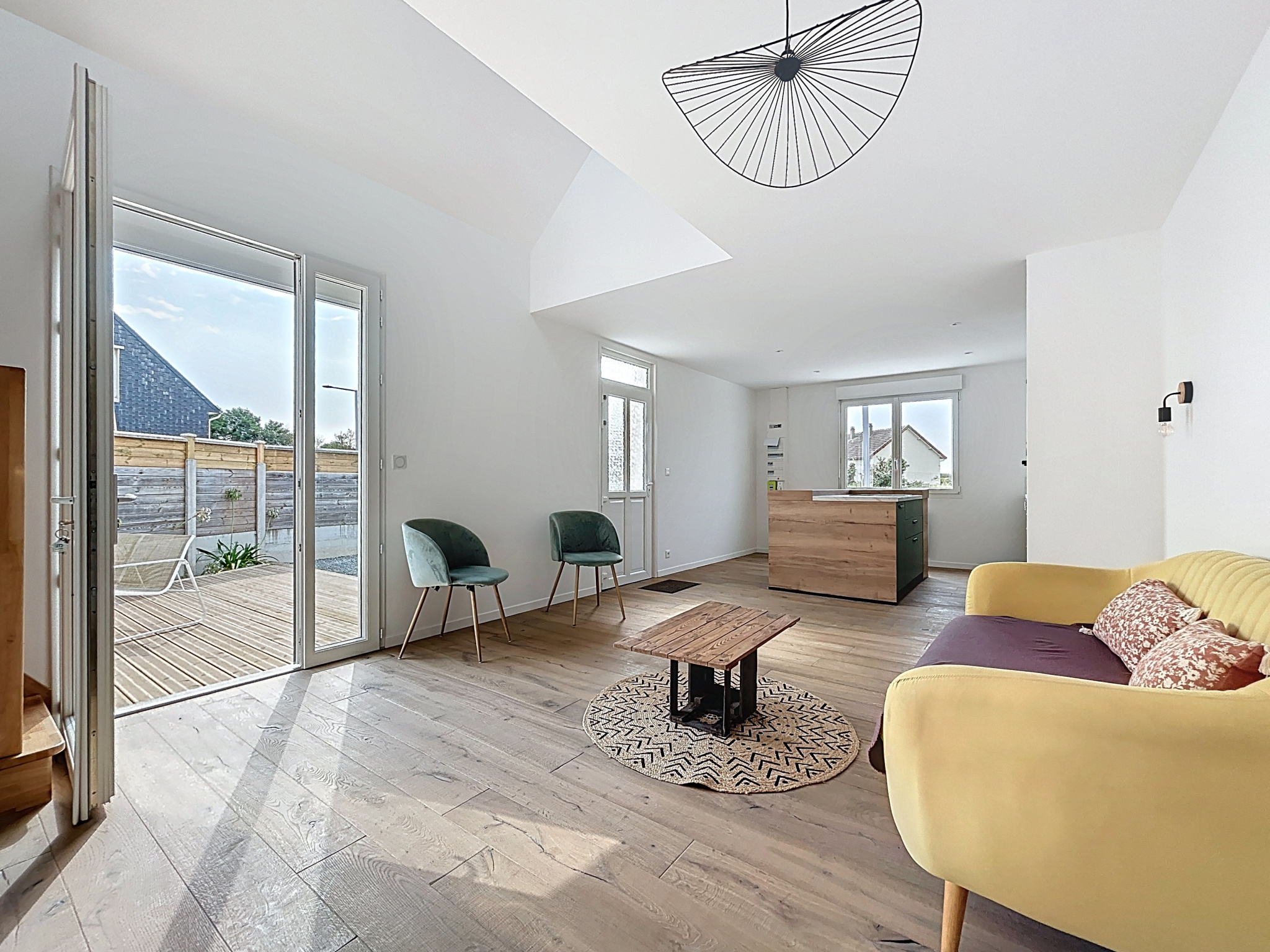 À l'extérieur, vous profiterez d'une terrasse en bois, parfaite pour vos instants de détente, le tout sur un terrain clos de 187 m2.