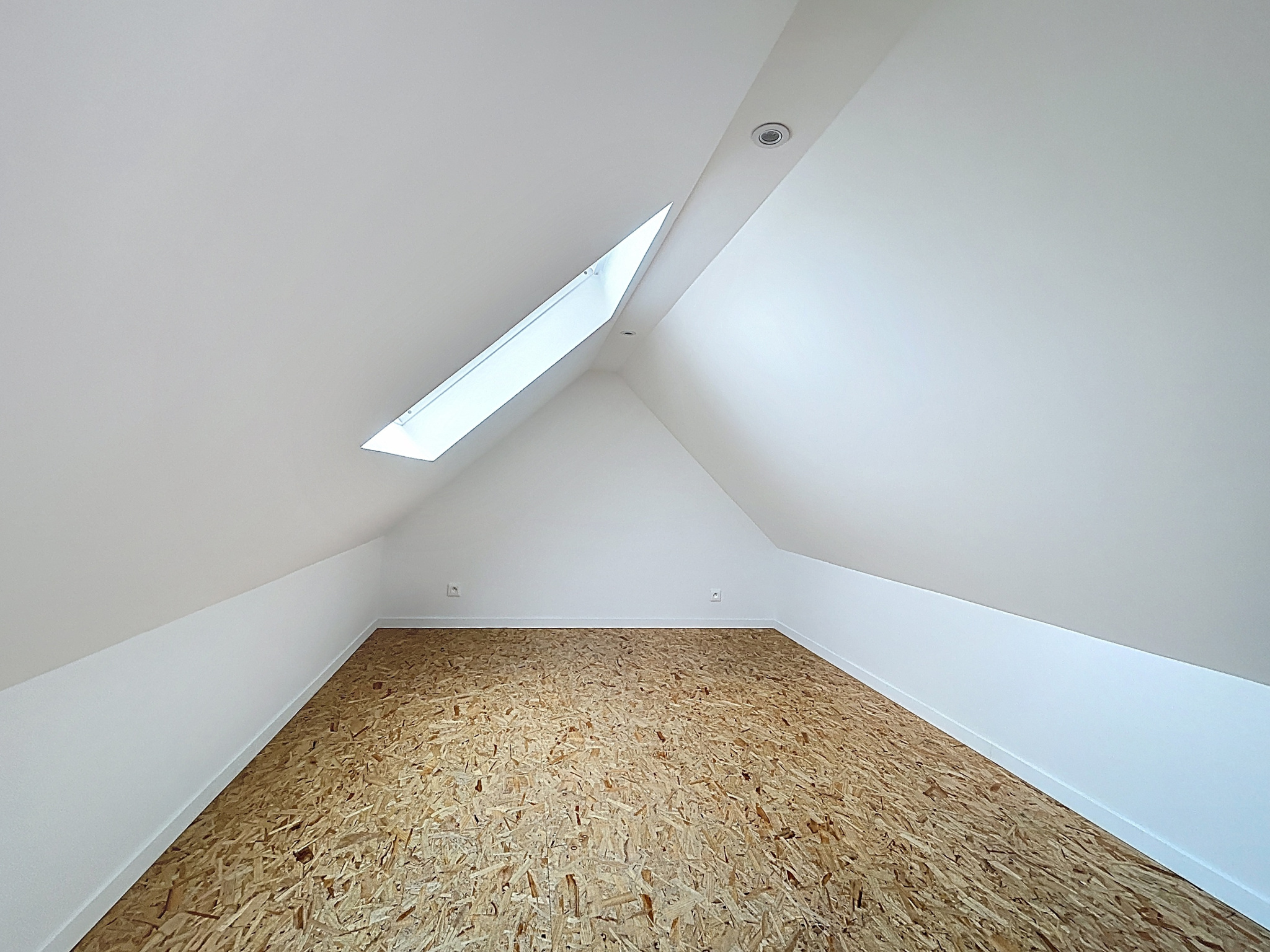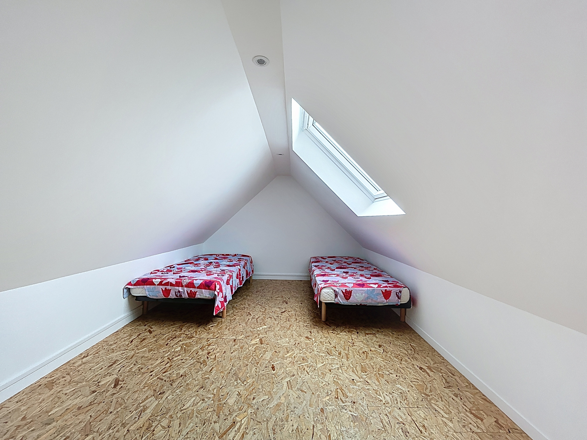 À l'étage, deux chambres mansardées offrent chacune une vue sur la mer.