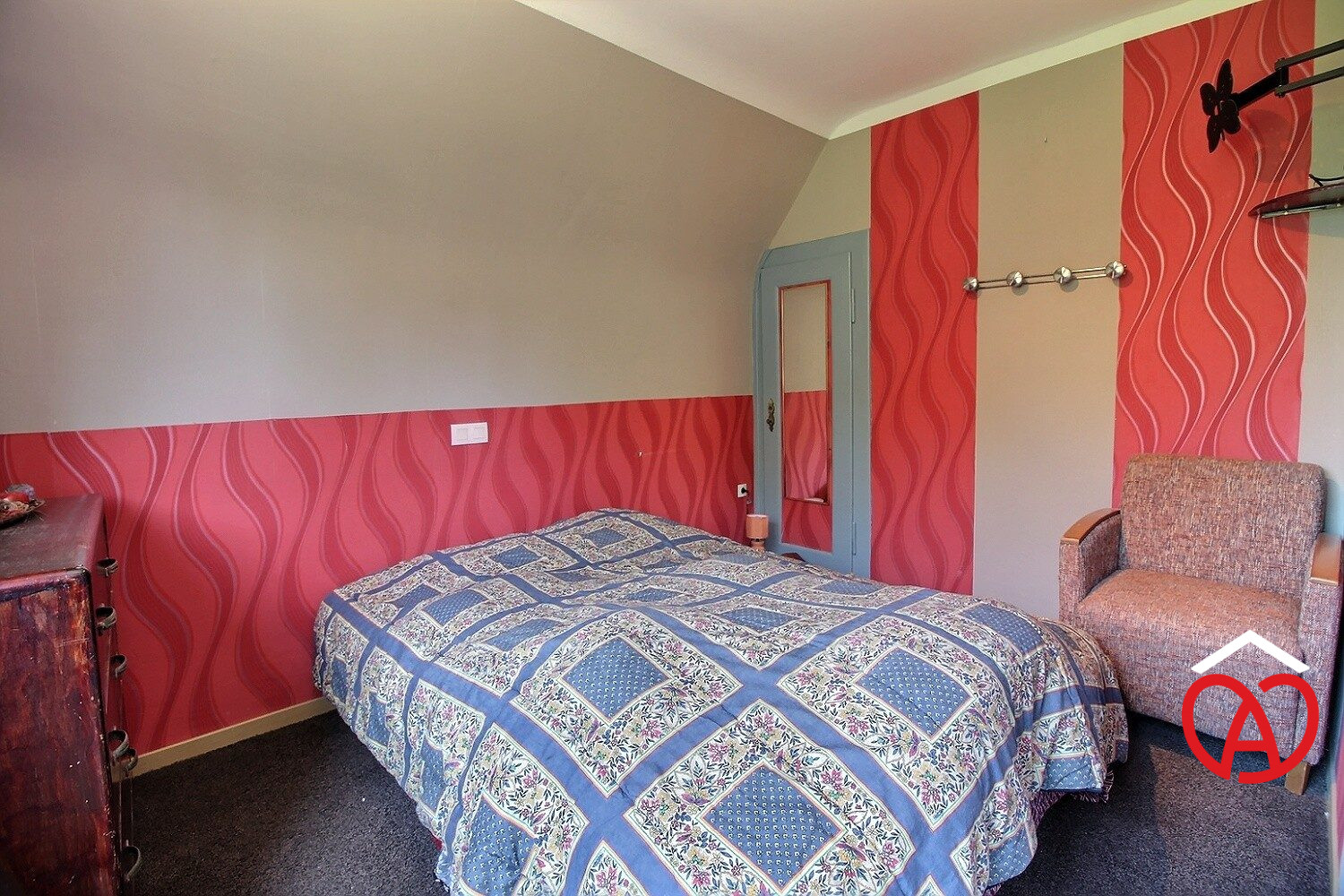 Etage : 1 grande chambre coté jardin, 2 chambres en enfilade coté rue.