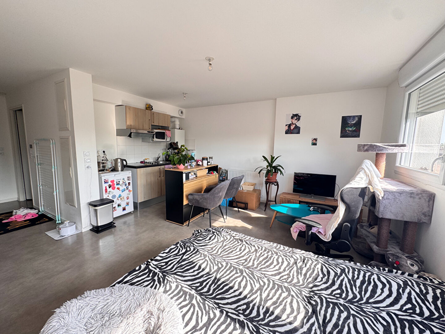 Ce grand studio situé au 3ème étage d'un immeuble récent dispose d'une belle pièce de vie lumineuse parfaitement exposée avec un coin cuisine et une salle de bains avec wc.