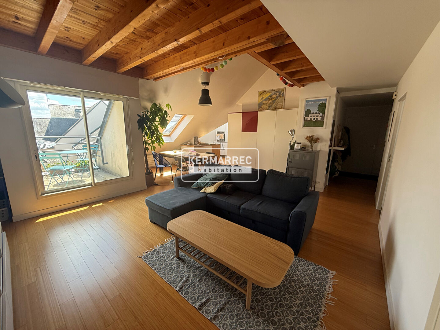 Dès l'entrée, vous serez séduit par le cachet unique de cet appartement : poutres apparentes, volumes généreux et une luminosité remarquable grâce à son aspect traversant. L'espace de vie est lui composé d'une belle pièce de près de 40 m², comprenant un salon convivial et une cuisine aménagée et équipée, baignée de lumière. Le tout prolongé par un balcon, idéal pour profiter des beaux jours à l'abri des regards.