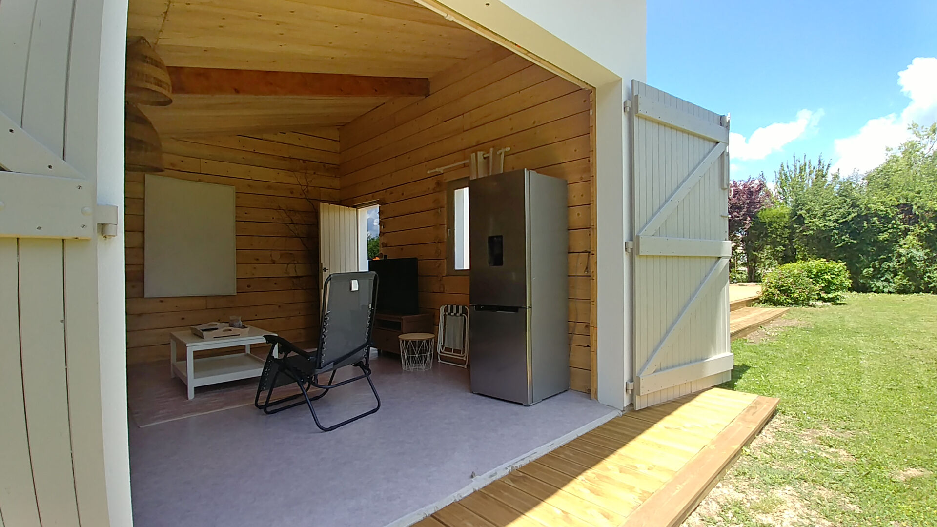 Vous pourrez y retrouver une entrée, une cuisine aménagée, un séjour lumineux avec poêle à granulés, accès sur le joli terrain arboré et vue sur la campagne. Deux chambres, un bureau, une salle d'eau, et un wc. Belle terrasse, atelier et espace dédié à la détente .
