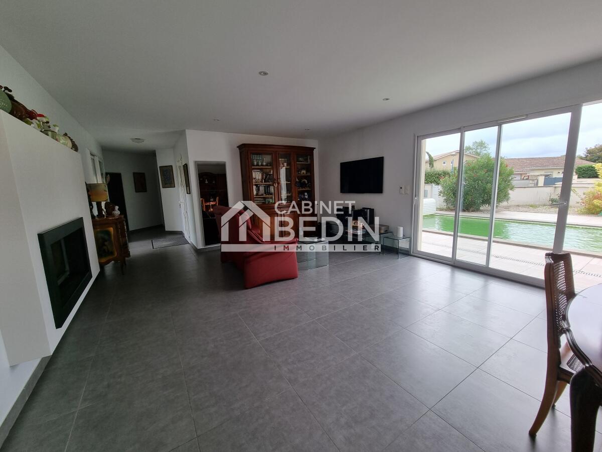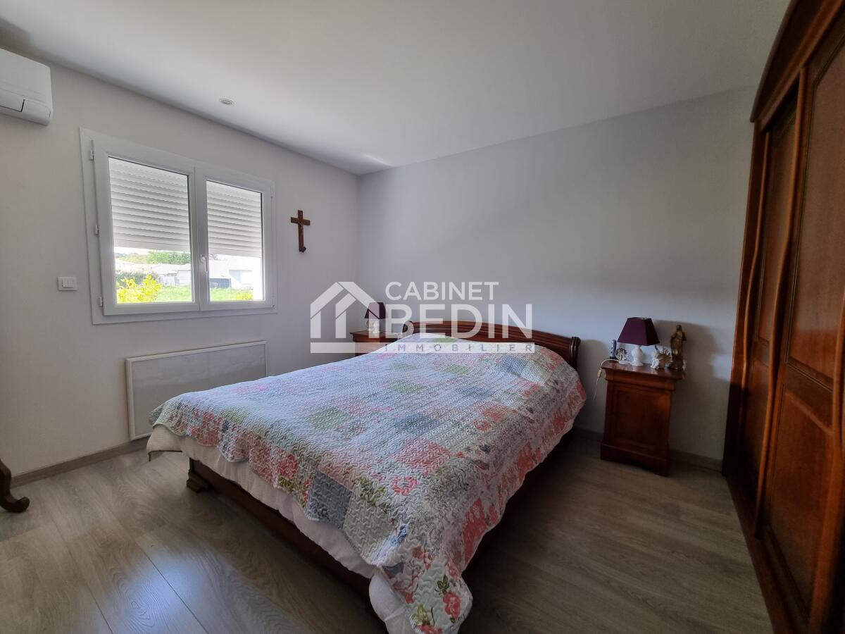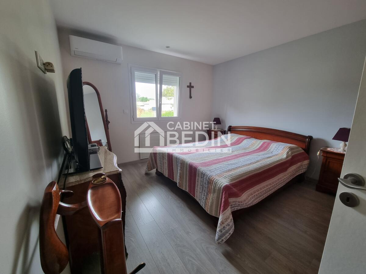 Audenge. Dans un environnement calme, découvrez cette belle maison offrant une grande pièce de vie lumineuse avec insert, une cuisine équipée moderne, 3 chambres confortables et la climatisation pour un confort optimal.