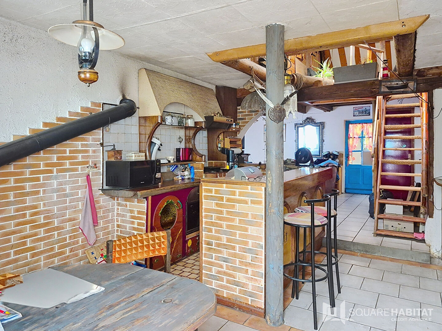 Par une entrée d'une trentaine de mètres végétalisée, vous arrivez sur un joli terrain paisible avec un bâti d'environ 55m².