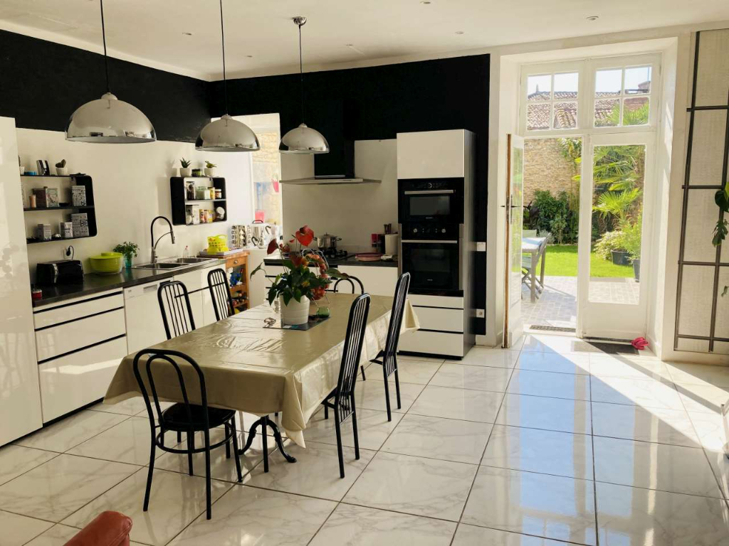 Maison centre bourg de 133m² habitables en plein centre bourg avec tous commerces, comprenant : une entrée, cuisine aménagée/équipée donnant sur terrasse exposée plein sud, salon, chambre de plain-pied avec sa salle d'eau privative, au premier étage palier desservant deux chambres, un dressing, salle d'eau, WC, au second grenier de 77m² (possibilité d'aménagement), jardin clos et sans vis à vis, un solarium, garage non attenant de 50m².
