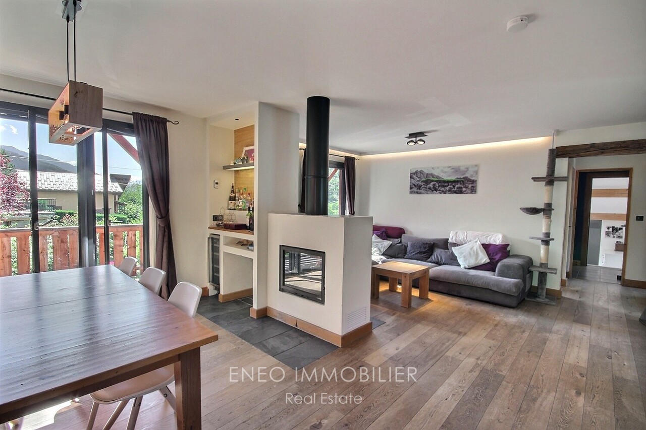 Le terrain arboré accueille une piscine hors-sol, une belle terrasse à l’abri des regards, un grand garage et des places de stationnement extérieur. Située dans un village calme à proximité immédiate de Bourg-Saint-Maurice, cette maison conjugue confort, intimité et cadre naturel exceptionnel.