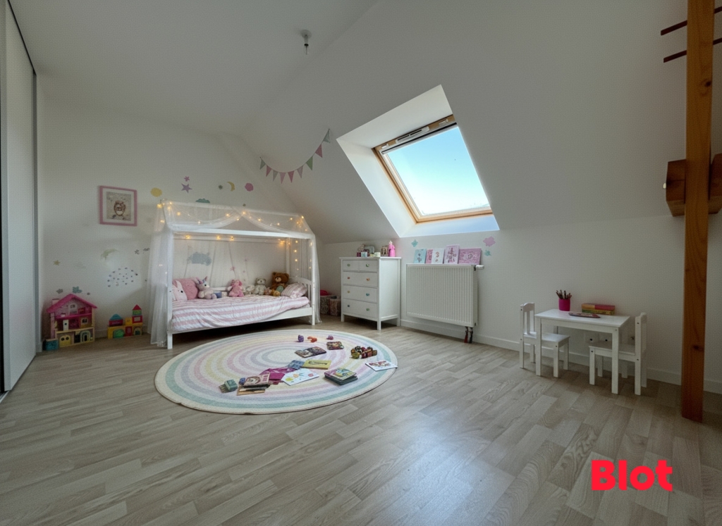 Nichée au cœur d'un lotissement à proximité immédiate du centre bourg et de toutes ses commodités, cette maison dispose de 111 m² habitables et plus de 120 m² au sol.