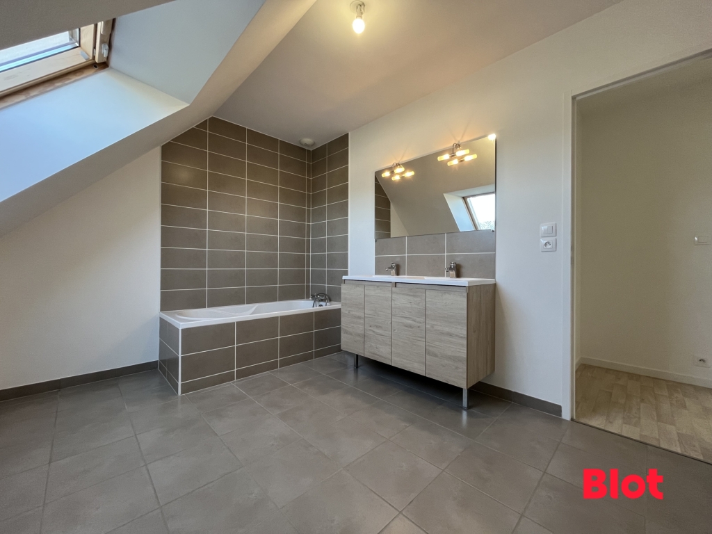 A l'étage, un dégagement vous mène vers trois grandes chambres avec placard, une salle de bais et WC suspendus.