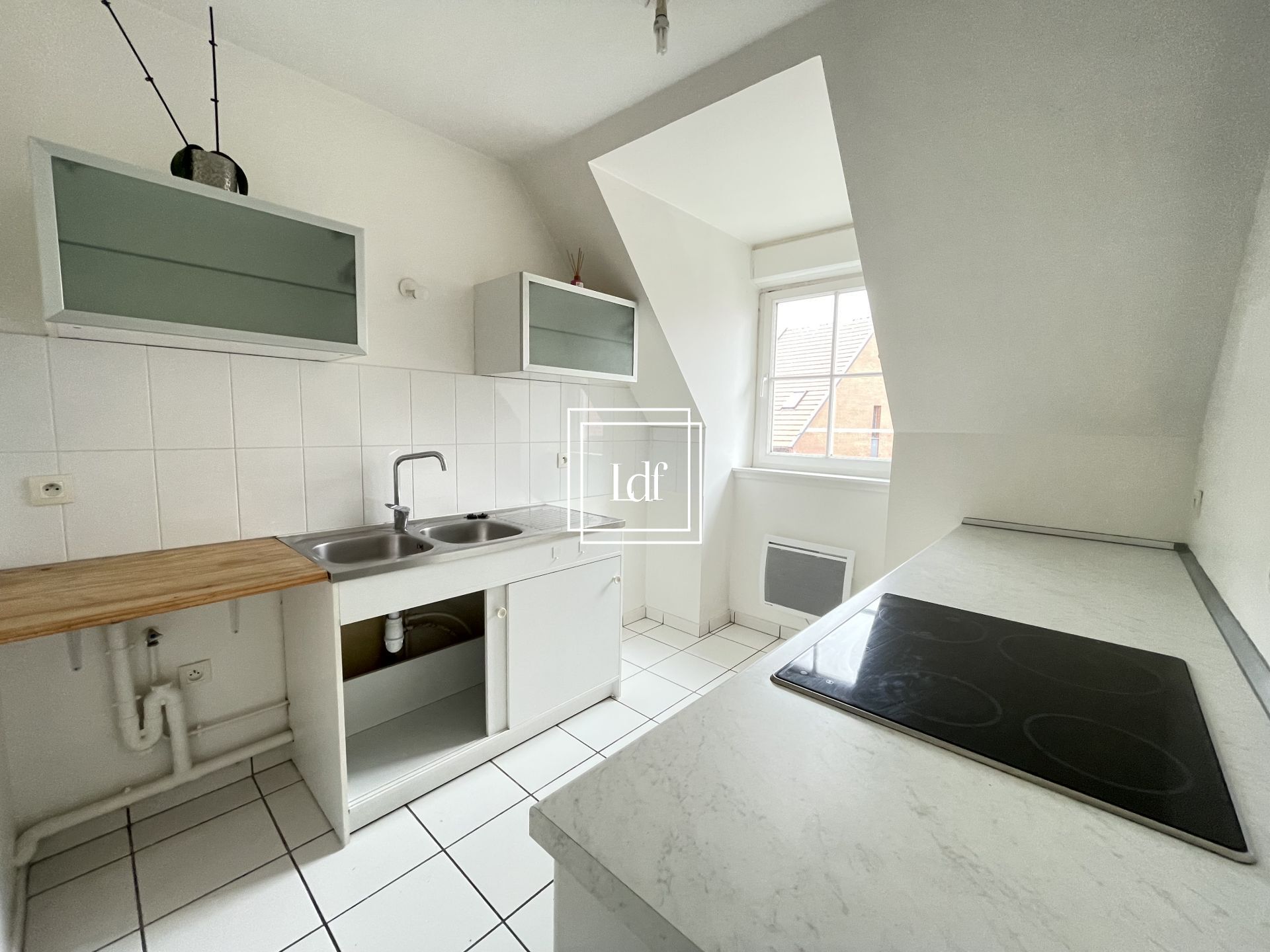 L'immobilière de Faches vous présente dans une résidence récente et sécurisée du Vieux Lille avec gardien, ce bel appartement T2 de 46 m² en parfait état au 5ème et dernier étage, vous offrant un large séjour lumineux, cuisine aménagée (ouverture possible), SDB et WC indépendant, chambre avec placard. Garage fermé en sous-sol. CC annuelles de 1364? (eau comprise), copropriété de 40 lots.