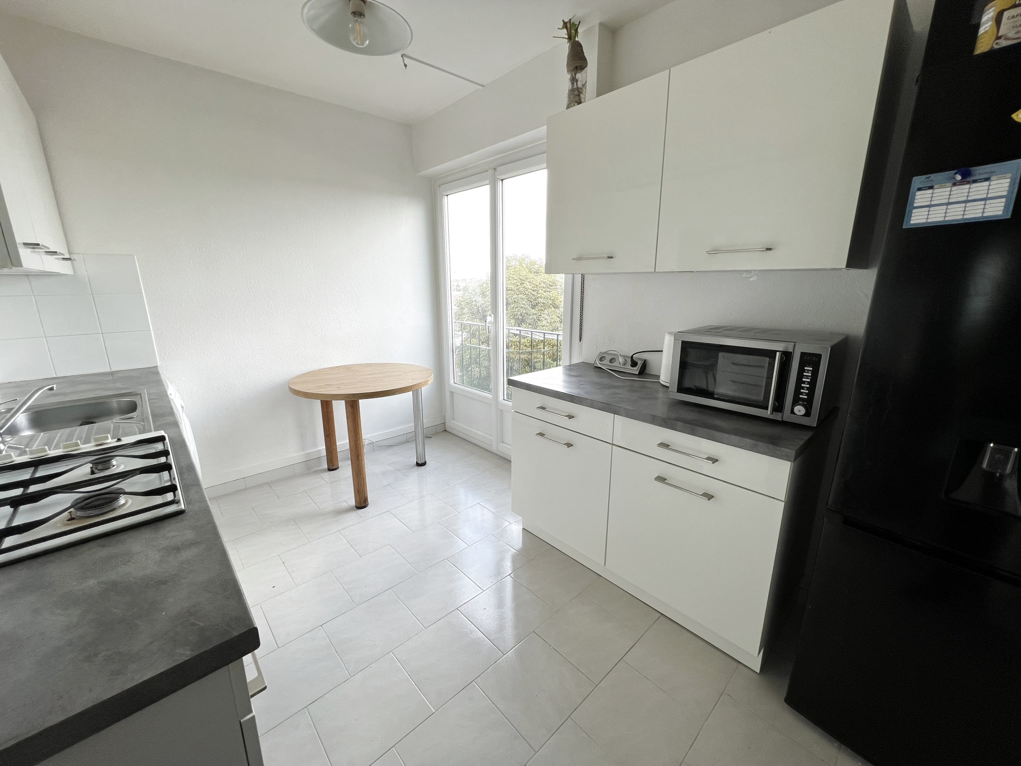 Cet appartement se compose d'une entrée, d'un double séjour spacieux et lumineux (possibilité de faire une troisième chambre aisément), d'une cuisine avec son cellier, de deux chambres, d'une salle de bain, d'un WC et d'un grand placard.