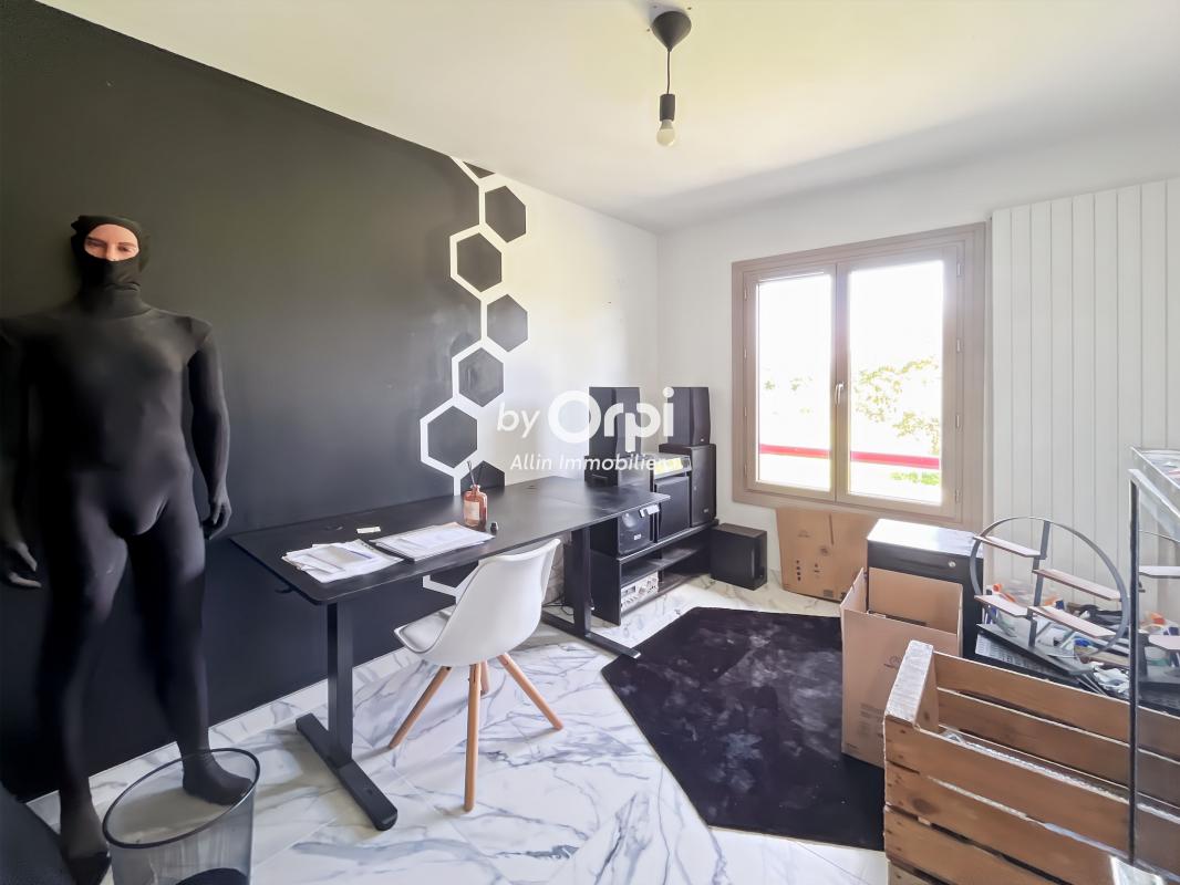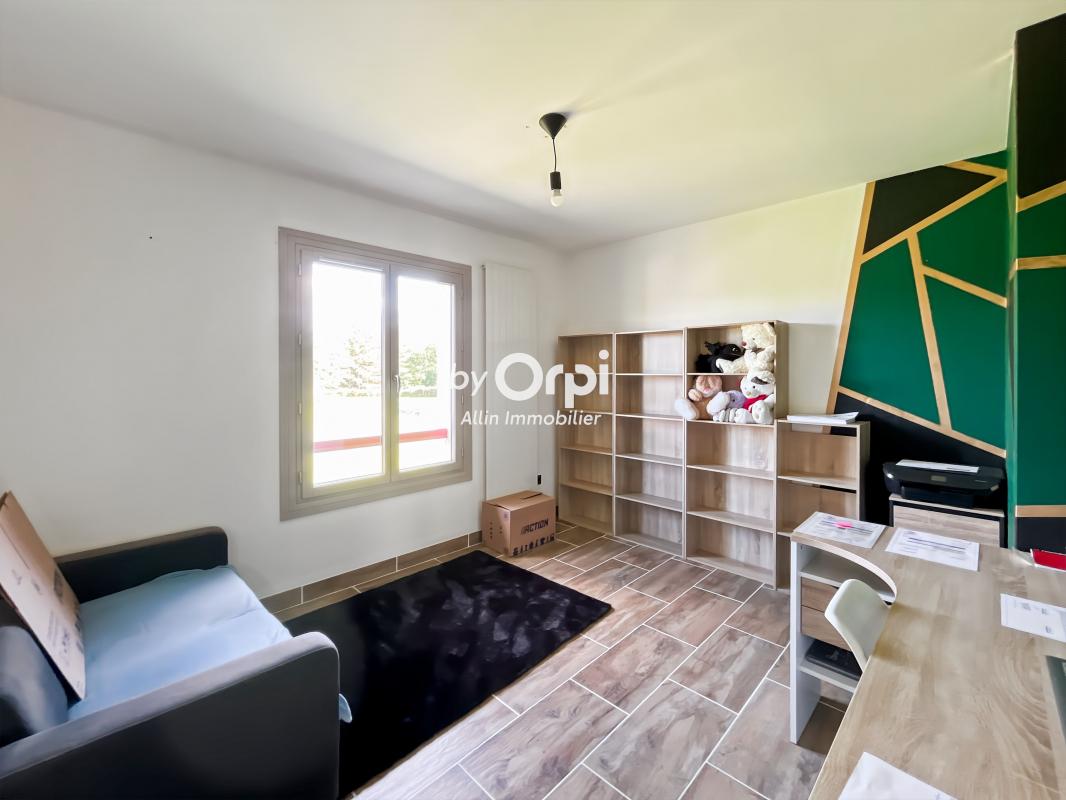 L'entrée de la maison s'ouvre sur un séjour lumineux d'environ 34 m² avec cheminée fermée, complété par une cuisine ouverte équipée (12 m²). Depuis cet espace, on accède à trois chambres ou bureaux (10, 10 et 11 m²). Un système de ventilation diffuse la chaleur de la cheminée jusque dans les chambres et jusqu'à l'étage.