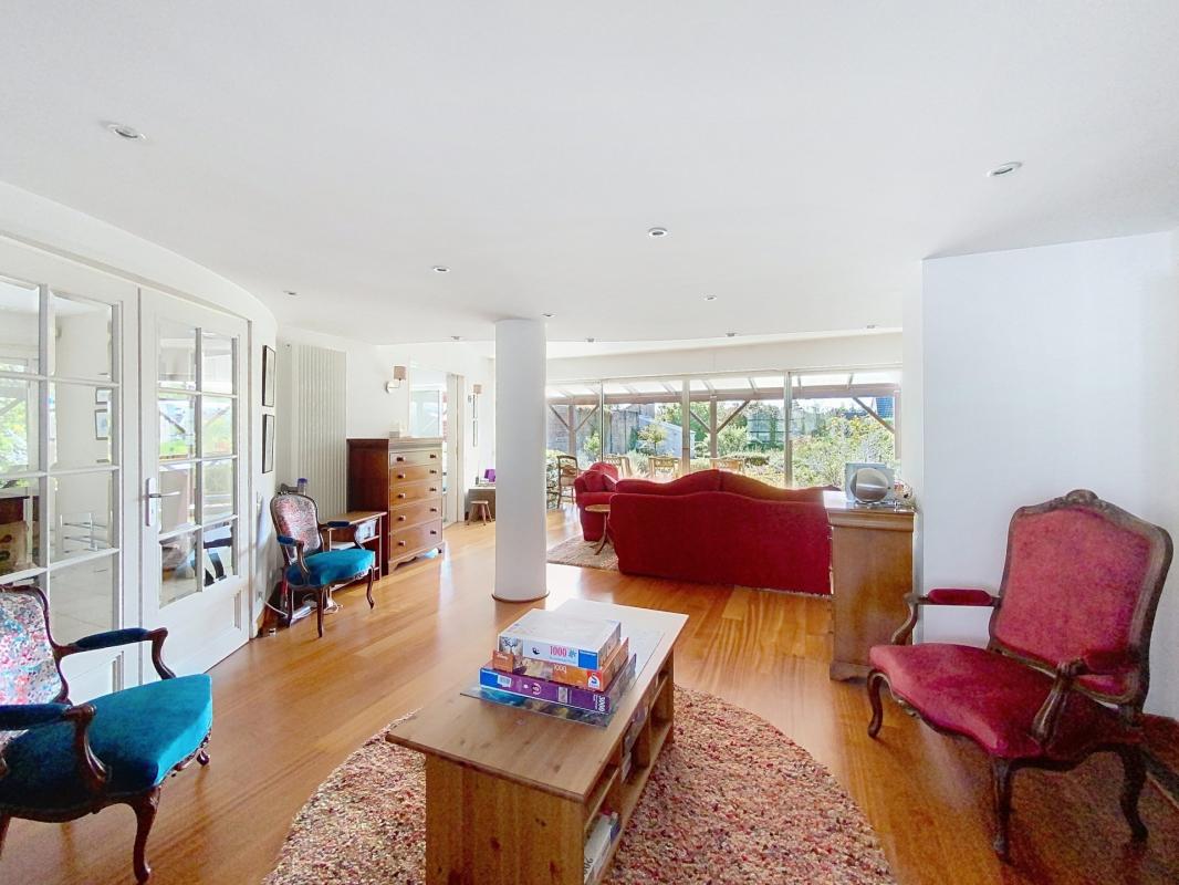 Belle maison individuelle avec de beaux volumes (240m² hab) bâtie sur 1700m² de terrain orienté Sud Ouest. Elle comprend au rez-de-chaussée un salon/séjour de 65m² donnant sur la terrasse et le jardin, une cuisine équipée avec coin repas et un bureau.