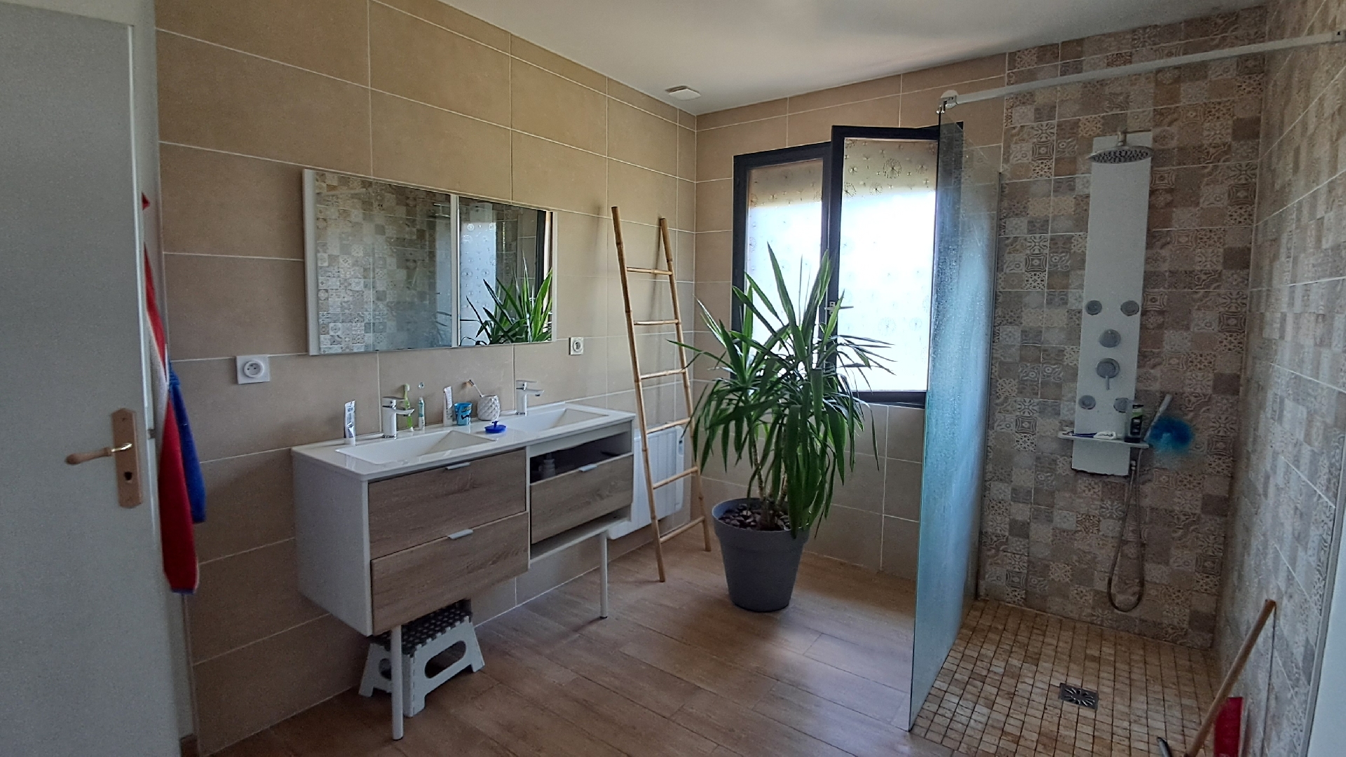 À l'étage, un palier dessert trois chambres, un emplacement pour salle de bains à terminer et un second WC.