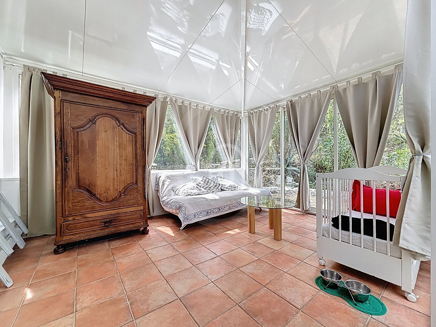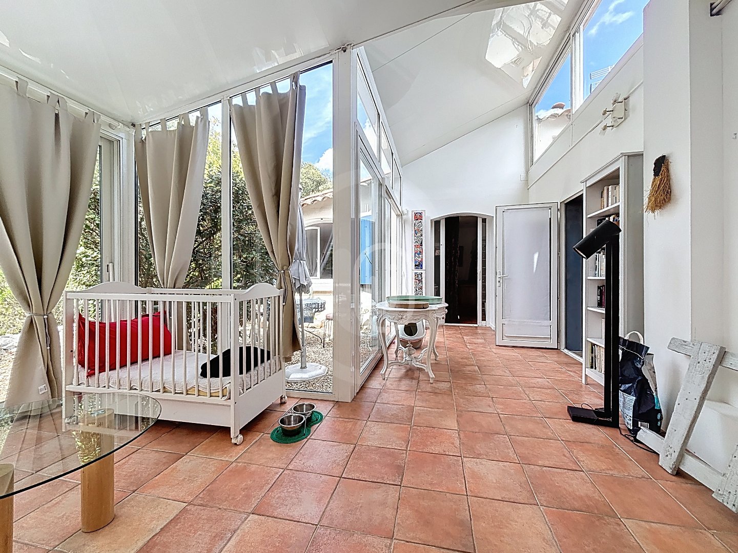 Une très grande véranda, qui peut facilement être aménagée en troisième chambre ou en salon d'hiver.