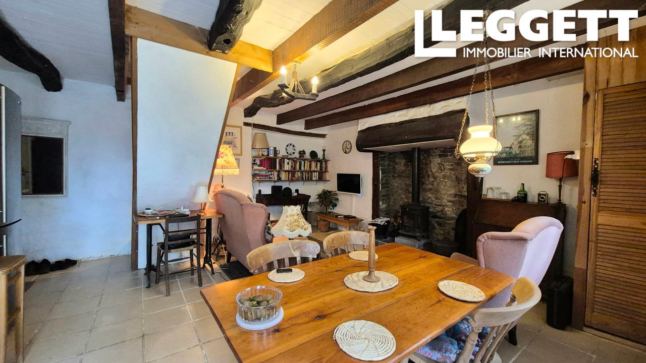 A39850JRD29 - Charmante maison de 3 chambres, située dans un hameau paisible près de Huelgoat, comprenant une annexe avec salle d'eau, un salon ouvert avec poêle à bois, deux chambres doubles à l'étage, un abri de jardin et un chauffage moderne par pompe à chaleur. Fosse septique récente installée. Située à environ 37 km des plages les plus proches, cette propriété est idéale pour ceux qui recherchent le calme de la campagne tout en restant à proximité de la côte et des commodités modernes.