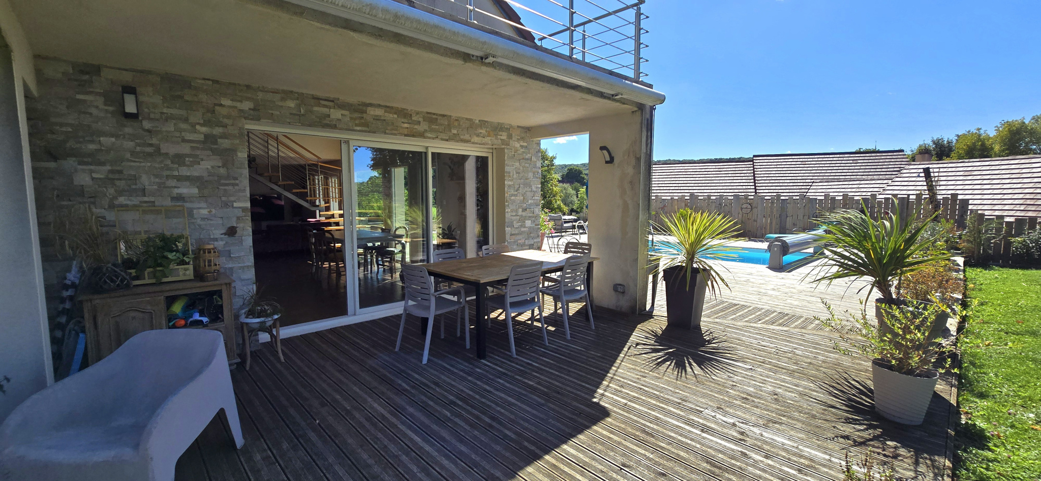 L'Agence vous propose en exclusivité cette superbe maison d'architecte contemporaine de 234 m2 habitables, située au calme sur un terrain de 1002 m2 entièrement clos de la commune de MOISSEY à 15 mn de Dole.