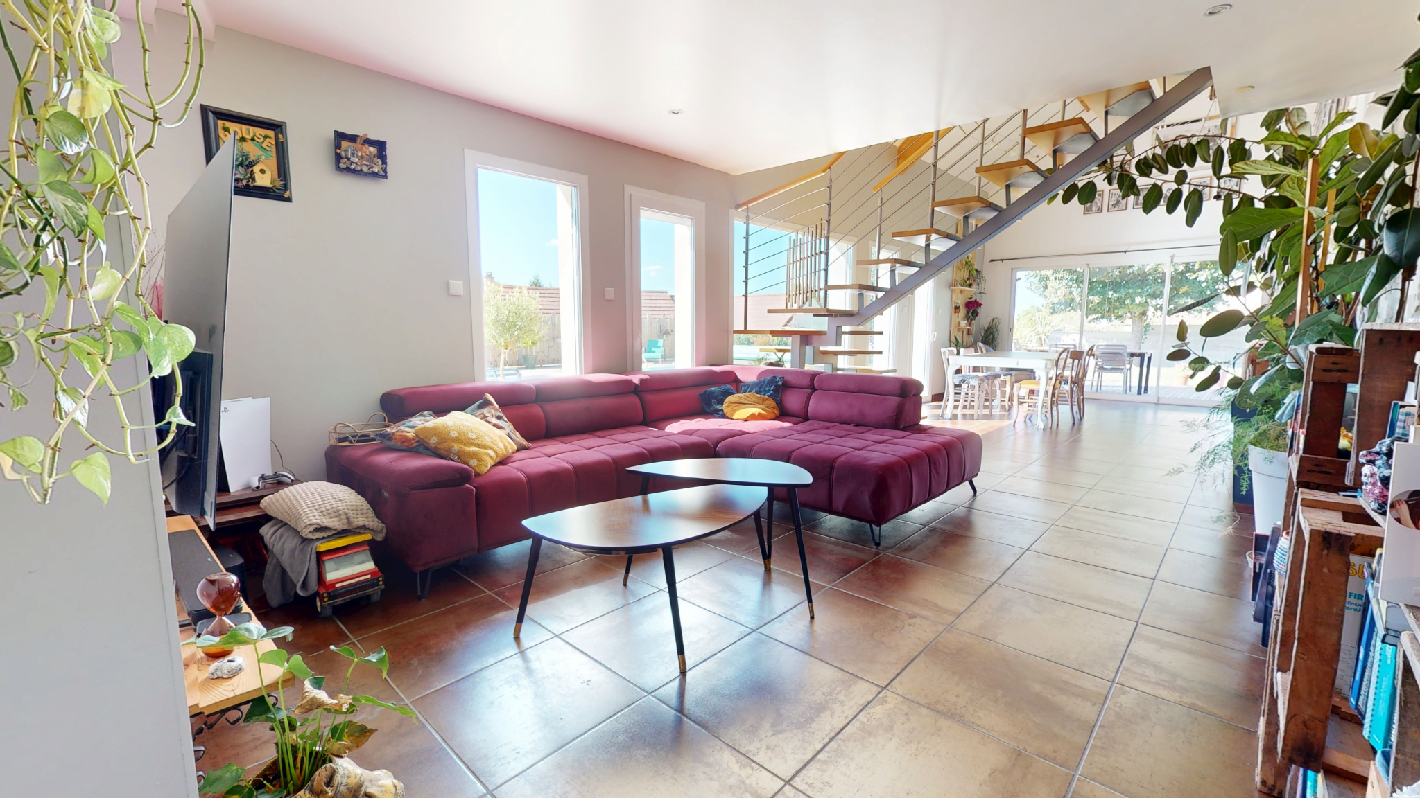 L'étage est constitué de 4 chambres dont une avec dressing, salle d'eau, toilette indépendant et passerelle dominant la pièce de vie.