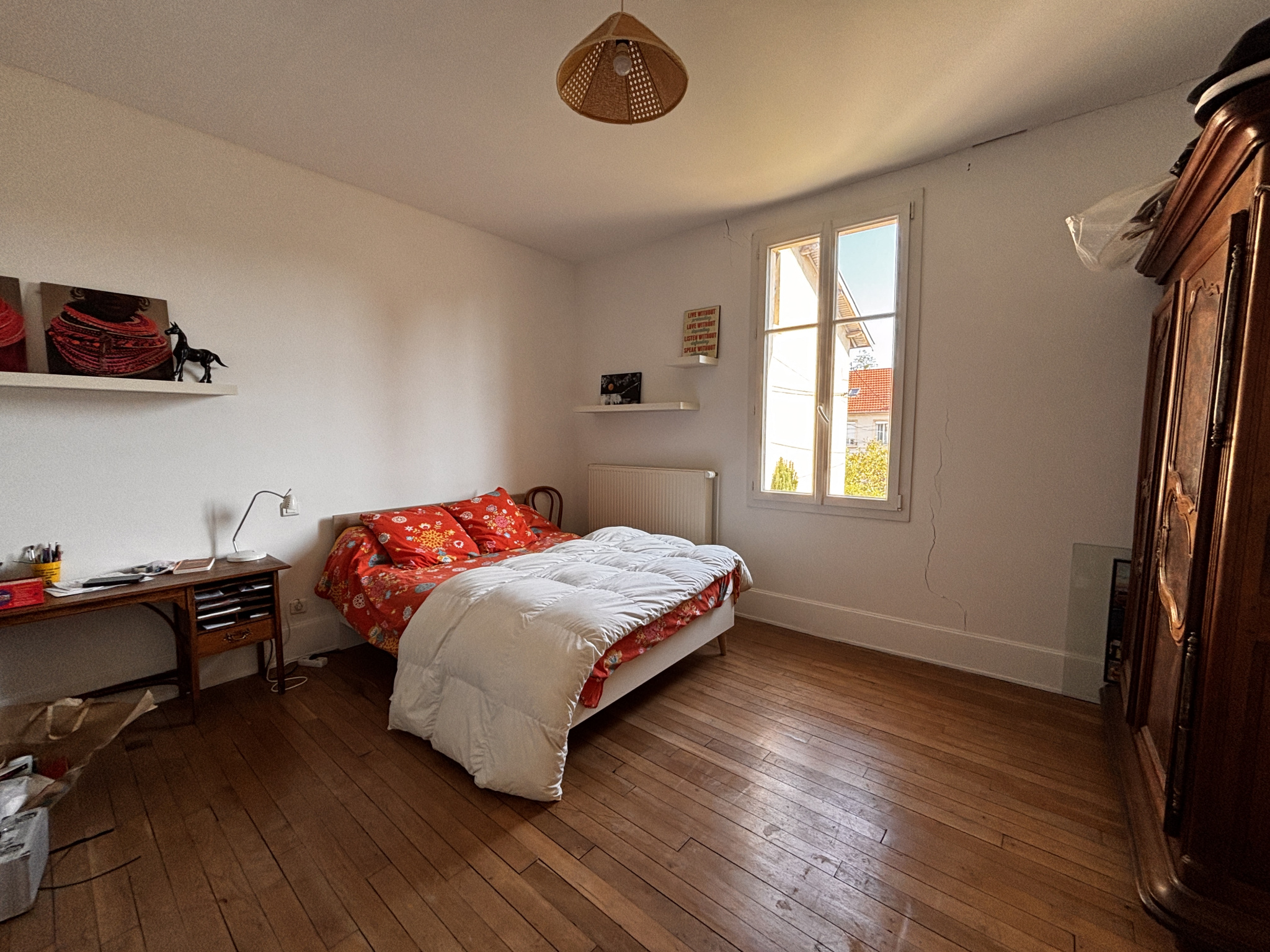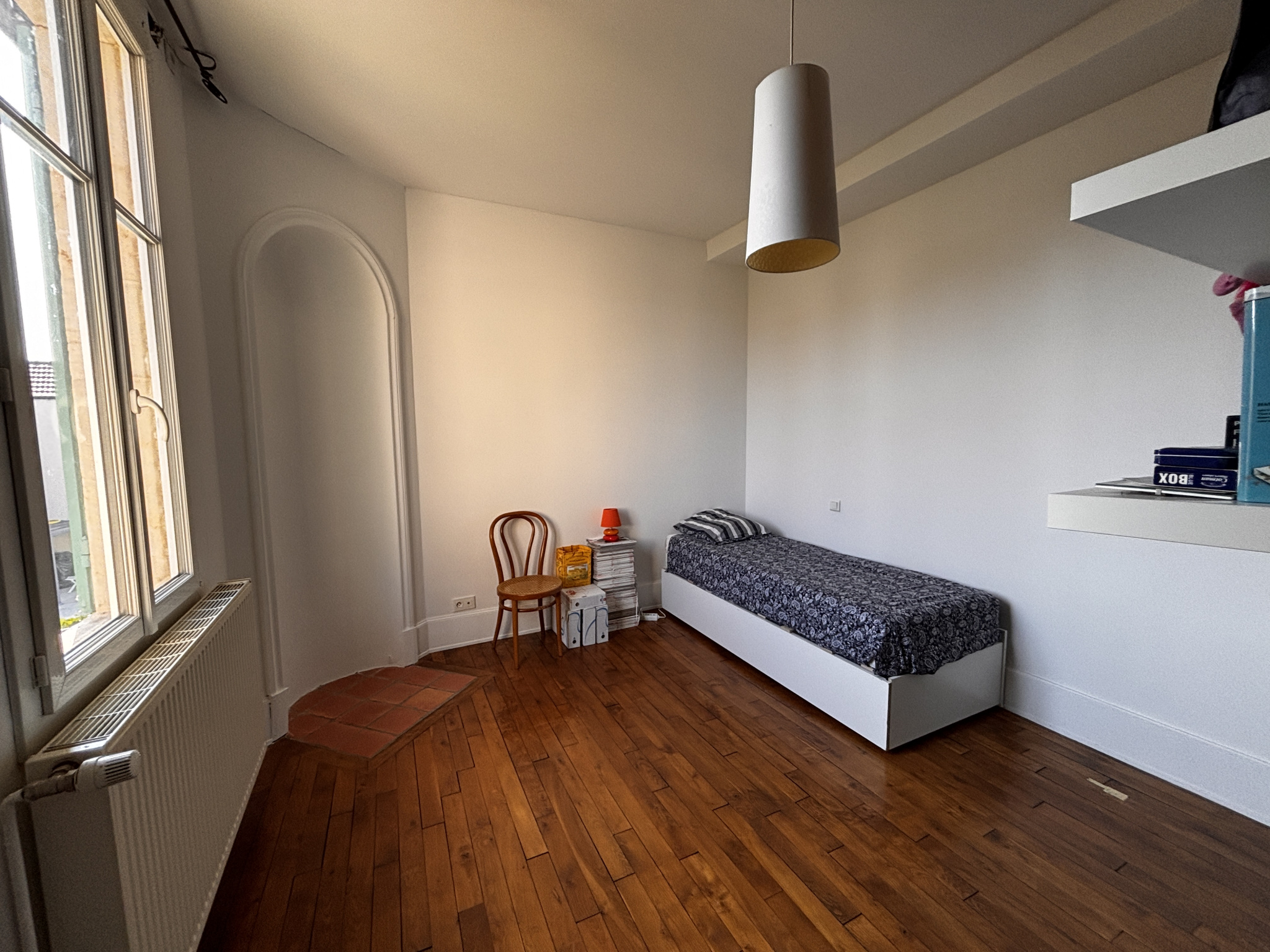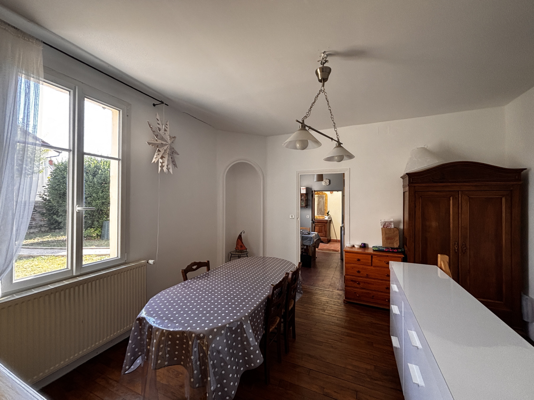 A vendre Belle maison 1930 de type 5 Dijon Charles Poisot. Dans un environnement calme proche commerces et transports. Maison lumineuse composée : Au rez-de-chaussée Grande entrée desservant un espace de vie avec cuisine meublée et équipée, salon séjour avec parquet et cheminée, une chambre en souplex , cave et buanderie. Au premier étage deux belles chambres et salle de bains. Jardin clos et arboré avec un puits et 2 grands buchet. Chauffage gaz.