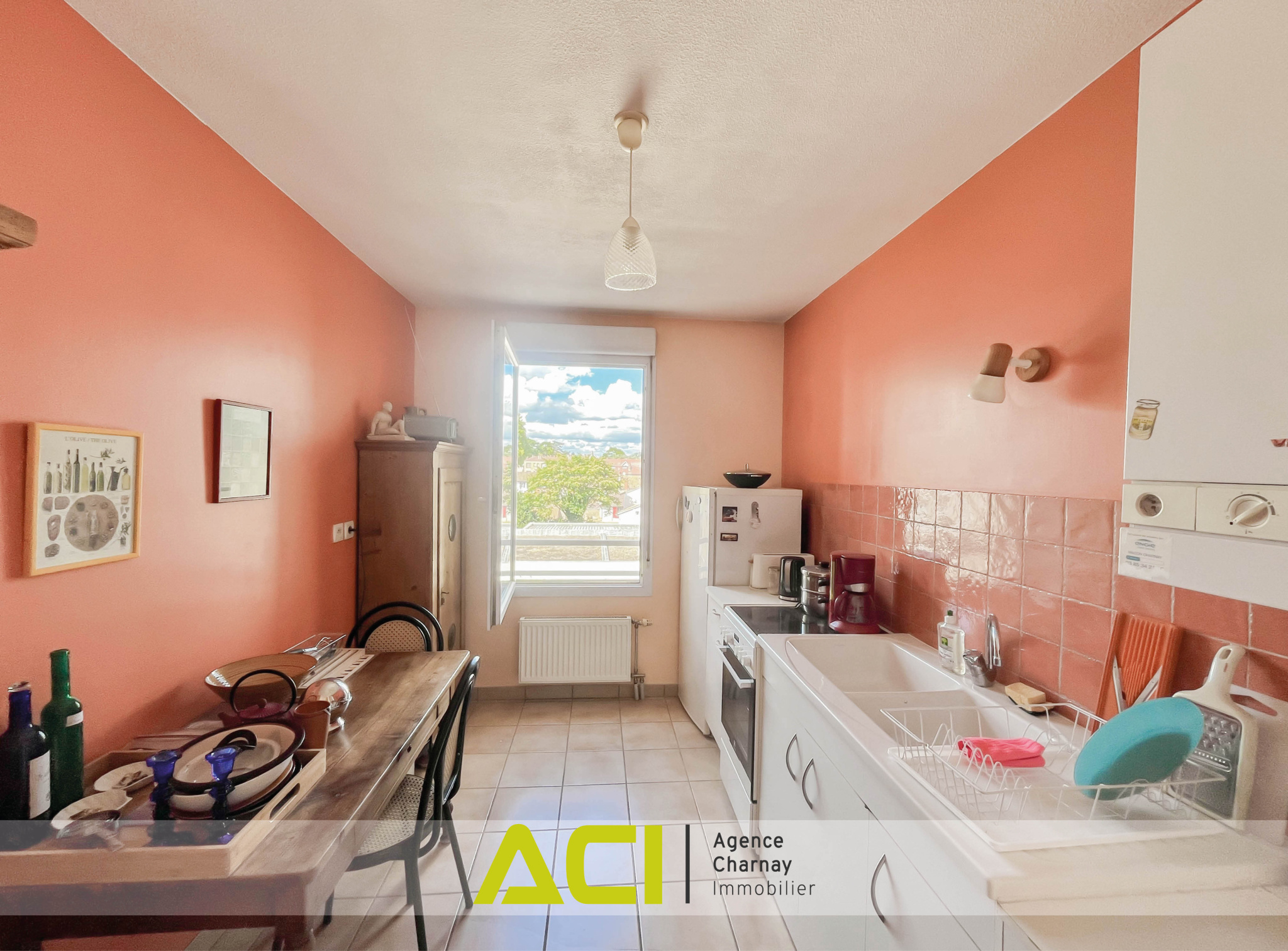 Rue Gardenet - Situé à proximité immédiate des centres-villes de MACON et CHARNAY , au 2ème étage avec ascenseur d'une résidence calme et appréciée, très bel appartement de type 3, d'une surface Carrez de 65,47 m2, composé comme suit : entrée, cuisine équipée, lumineuse pièce à vivre d'environ 20 m2 donnant sur terrasse couverte, dégagement avec rangement desservant deux chambres avec placard, une salle de bain ainsi qu'un wc indépendant. L'appartement dispose d'un emplacement de parking privatif fermé à l'extérieur du bâtiment ainsi que d'une cave en sous-sol. Chauffage individuel au gaz de ville - Menuiseries double-vitrage - Très bon état d'entretien - Commerces et écoles accessibles à pied. Taxe foncière 2024 : 1278 euros - Charges anuelles de copropriété : 1 348 euros.