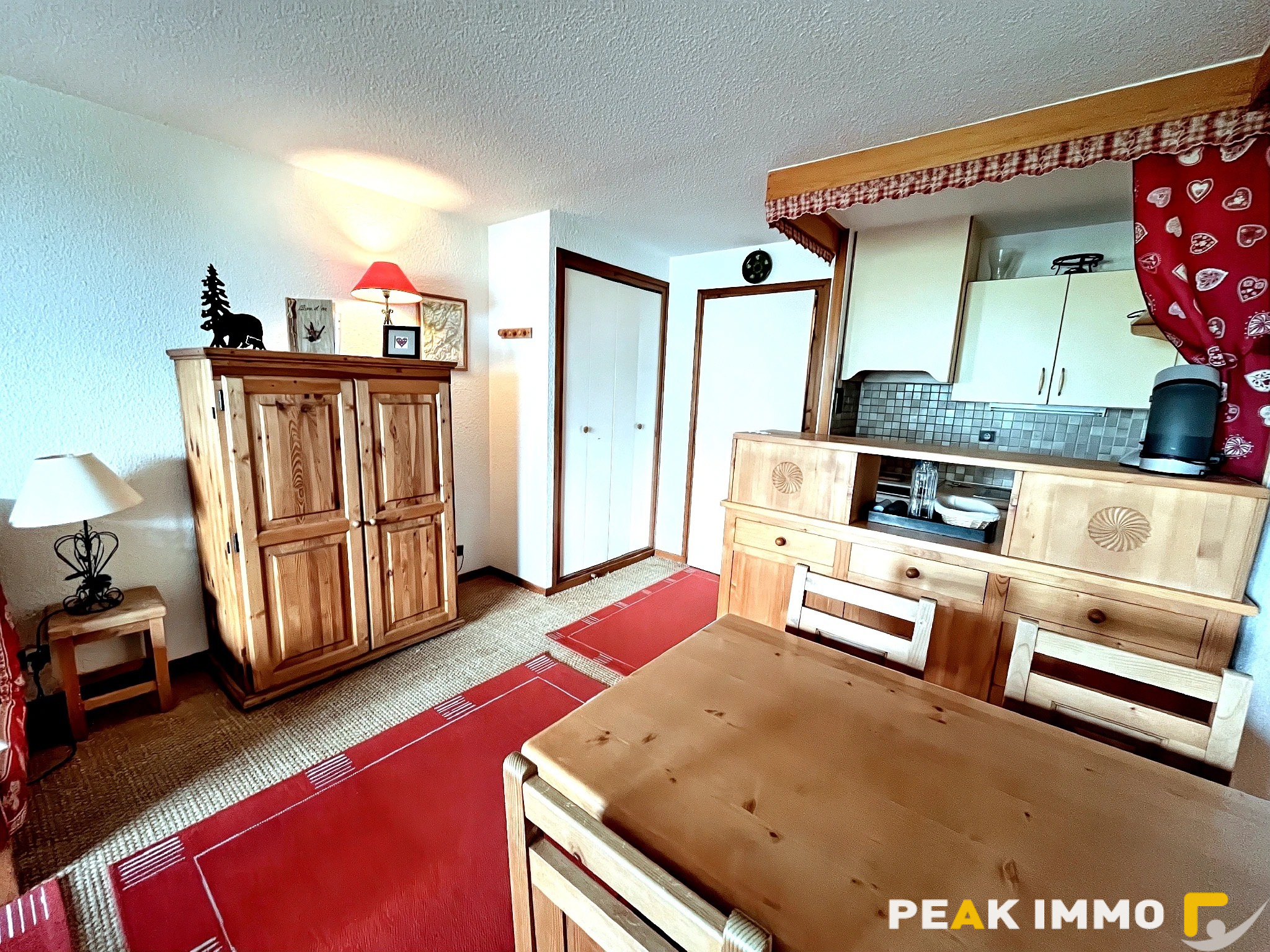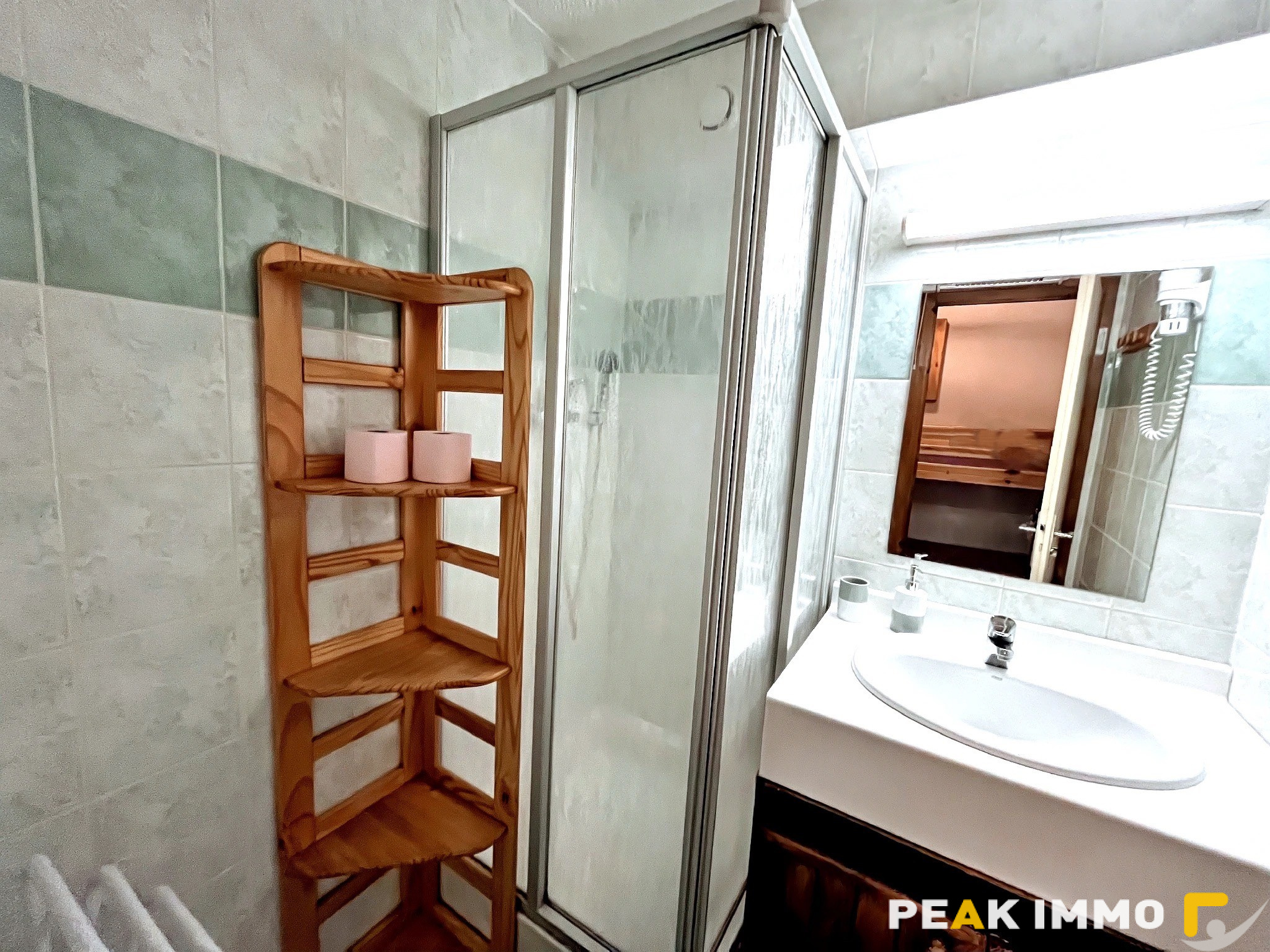En étage, avec ascenseur, il est cédé avec un parking privatif au sous-sol et un casier à skis personnel.