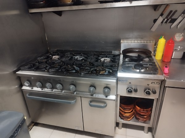Surface totale : 130 m2 avec petite terrasse fermée pour vente à emporter 36 places en salle + 10 salle privative Cuisine avec extraction, gaz.