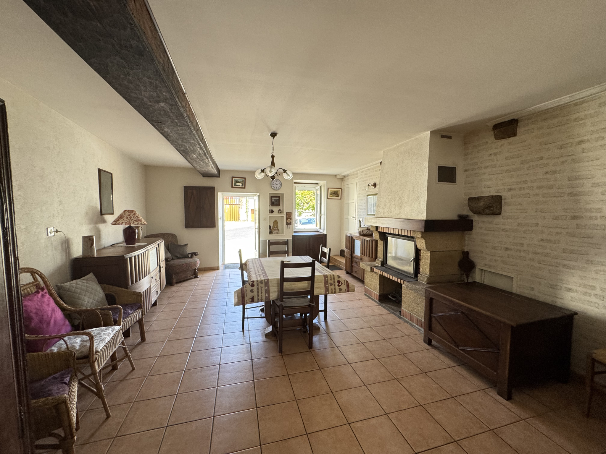 d'un salon/salle à manger chaleureux de 29 m2 avec cheminée,