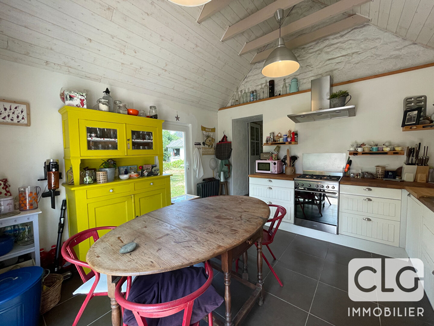 Coup de coeur assuré pour cette superbe longère en pierre, entièrement rénovée avec soin, située au centre du bourg de Combrit.
