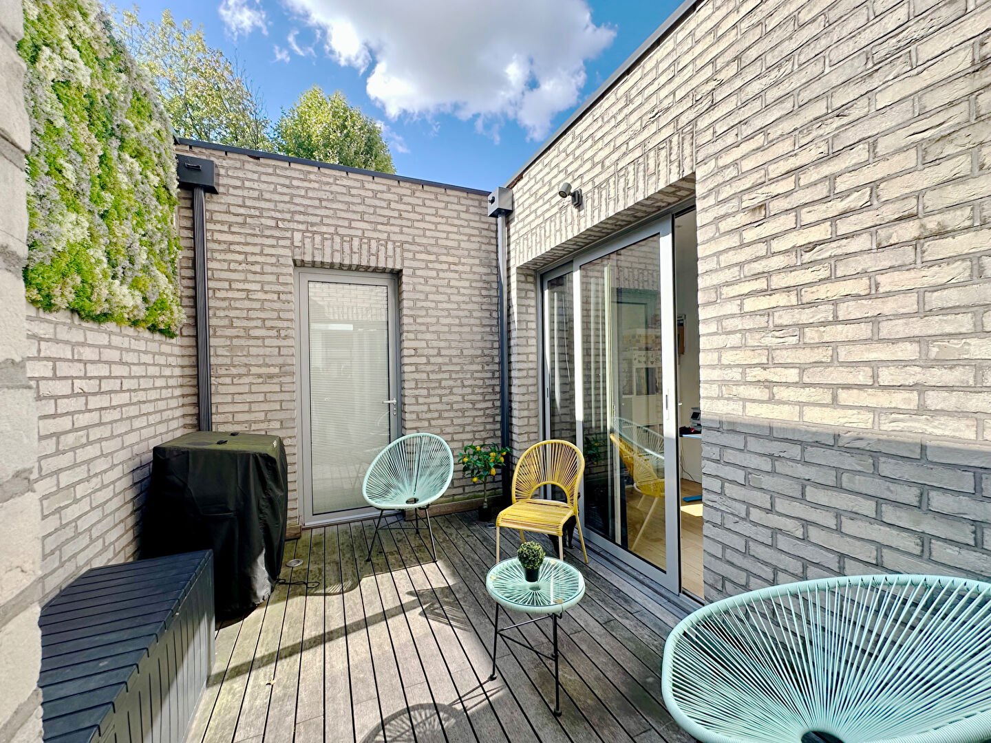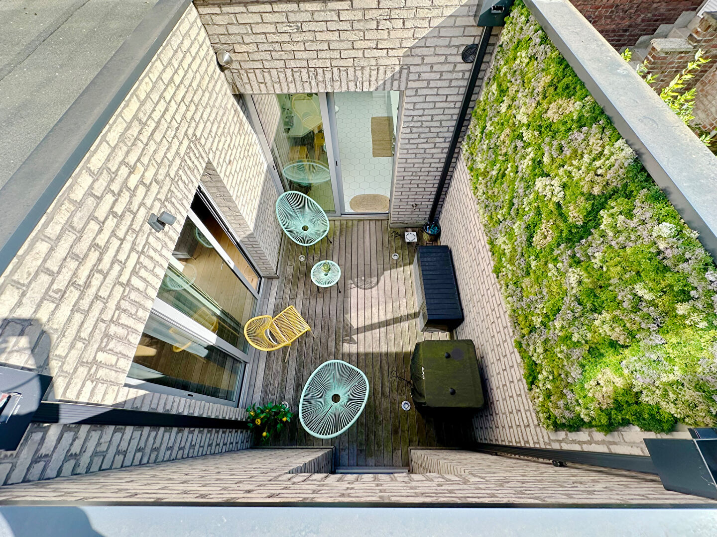 À l' étage, vous découvrirez une seconde terrasse, deux chambres spacieuses dont une avec dressing, ainsi qu'une salle de bains supplémentaire.