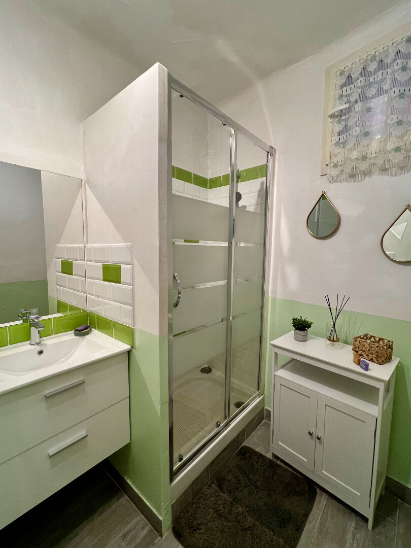 L'espace de vie principal, situé au premier étage et exposé plein sud, offre environ 80 m² habitables environ. Il comprend une cuisine équipée ouvrant sur un balcon, un séjour agréable, un cellier, deux chambres, une salle d'eau ainsi qu'un WC indépendant.