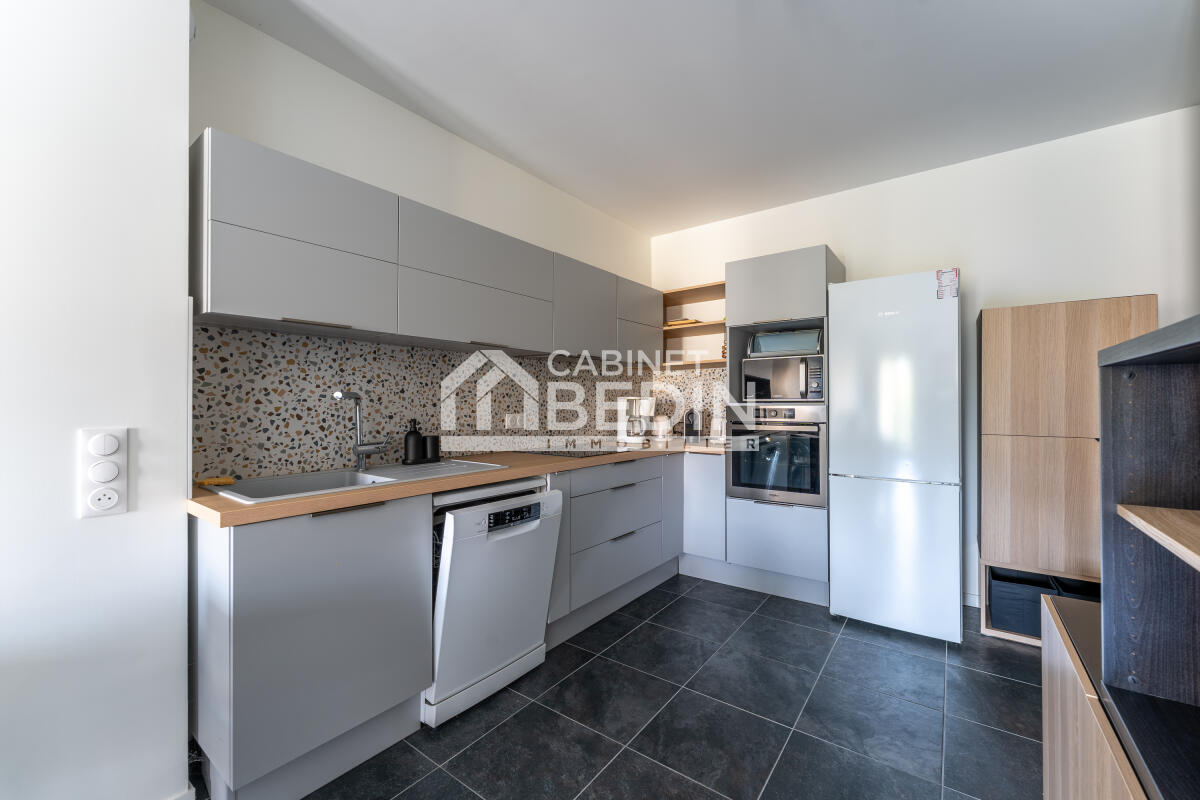 Exclusivité CABINET BEDIN - plein centre andernos. Opportunité. Au calme, dans résidence sécurisée de 2021 de bon standing avec ascenseur, belles prestations pour ce grand T2 lumineux et bien agencé comprenant une entrée, un grand salon séjour avec cuisine us équipée, un cellier attenant à la cuisine, salle d'eau, chambre. Balcon. Encore plus remarquable l'appartement dispose de 2 places de parkings sécurisés. A visiter sans tarder. . Les informations sur les risques auxquels ce bien est exposé sont disponibles sur le site Géorisques : www. georisques. gouv. fr. Montant estimé des dépenses annuelles d?énergie pour un usage standard : entre 500 et 740 Euros/an (année de référence 2025) Bien en copropriété , Charges annuelles 1085. 00 Euros