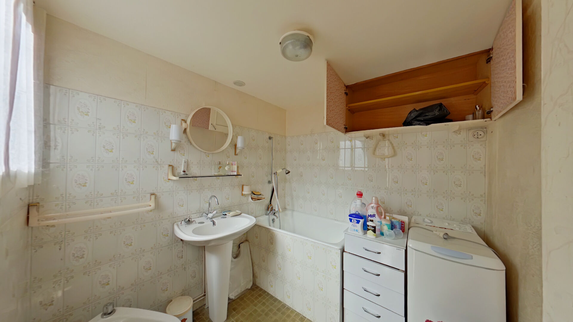 A l'étage se trouve un palier donnant accès à deux chambres, une salle d'eau avec un WC et une pièce de rangement qui donne un accès sur un spacieux grenier.