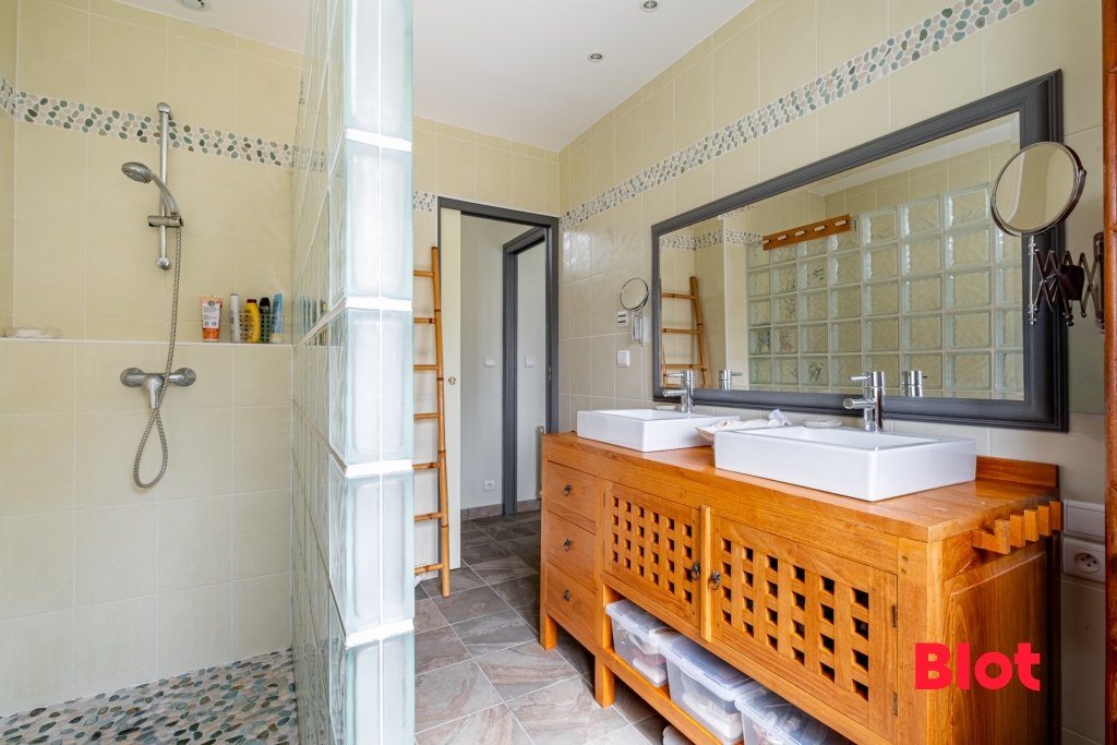 L'espace nuit , conçu pour votre confort, offre au rez-de-chaussée trois belles suites parentales avec leurs salles d'eau et WC privatifs. Une quatrième chambre vient compléter ce niveau. Ainsi qu'une salle de bain et des WC séparés. Une buanderie fonctionnelle , atout pratique au quotidien , se trouve aussi au rez-de-chaussée.