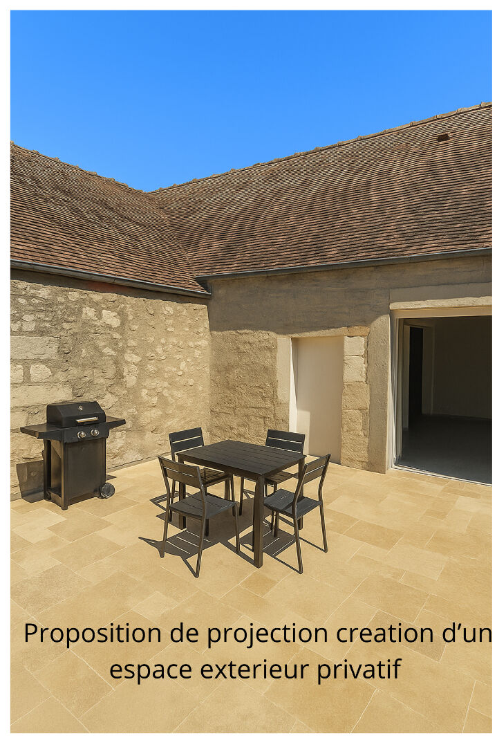 En rez-de-chaussée, une pièce de stockage offre un potentiel supplémentaire : elle peut être supprimée pour créer une agréable courette privée( proposition de projet en photo)