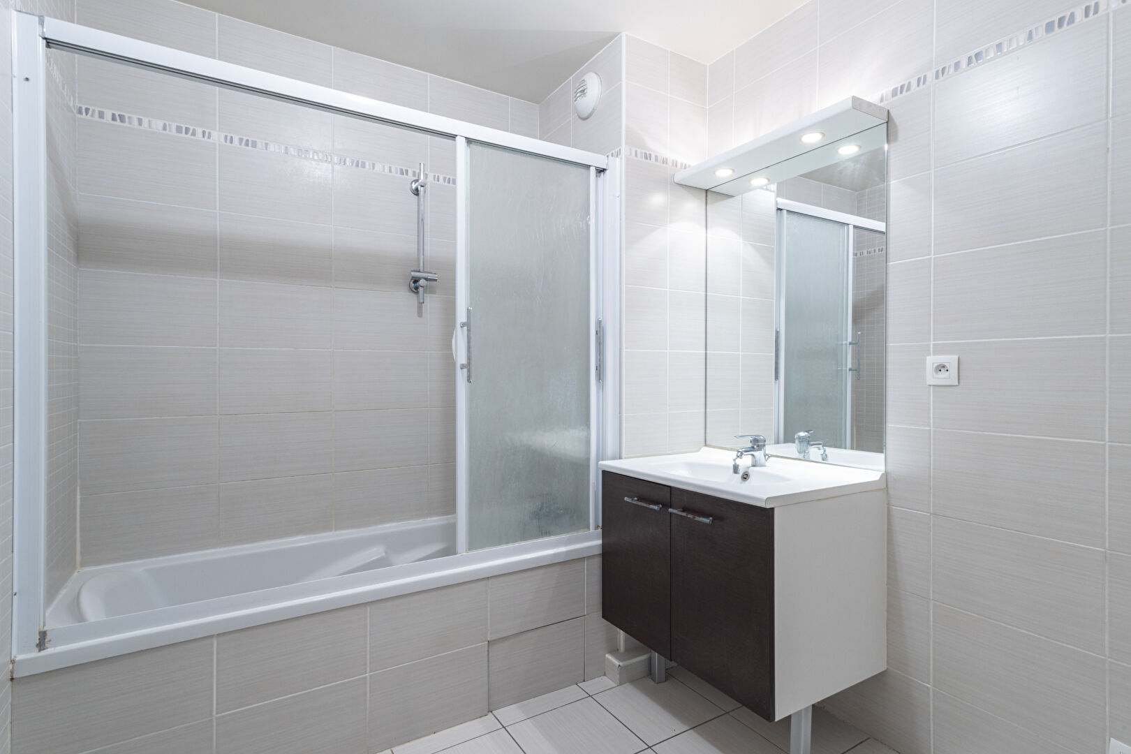 L'appartement se compose d'une entrée avec placard, d'un dégagement, de toilettes séparées, d'une salle de bains et de deux chambres avec placards intégrés.