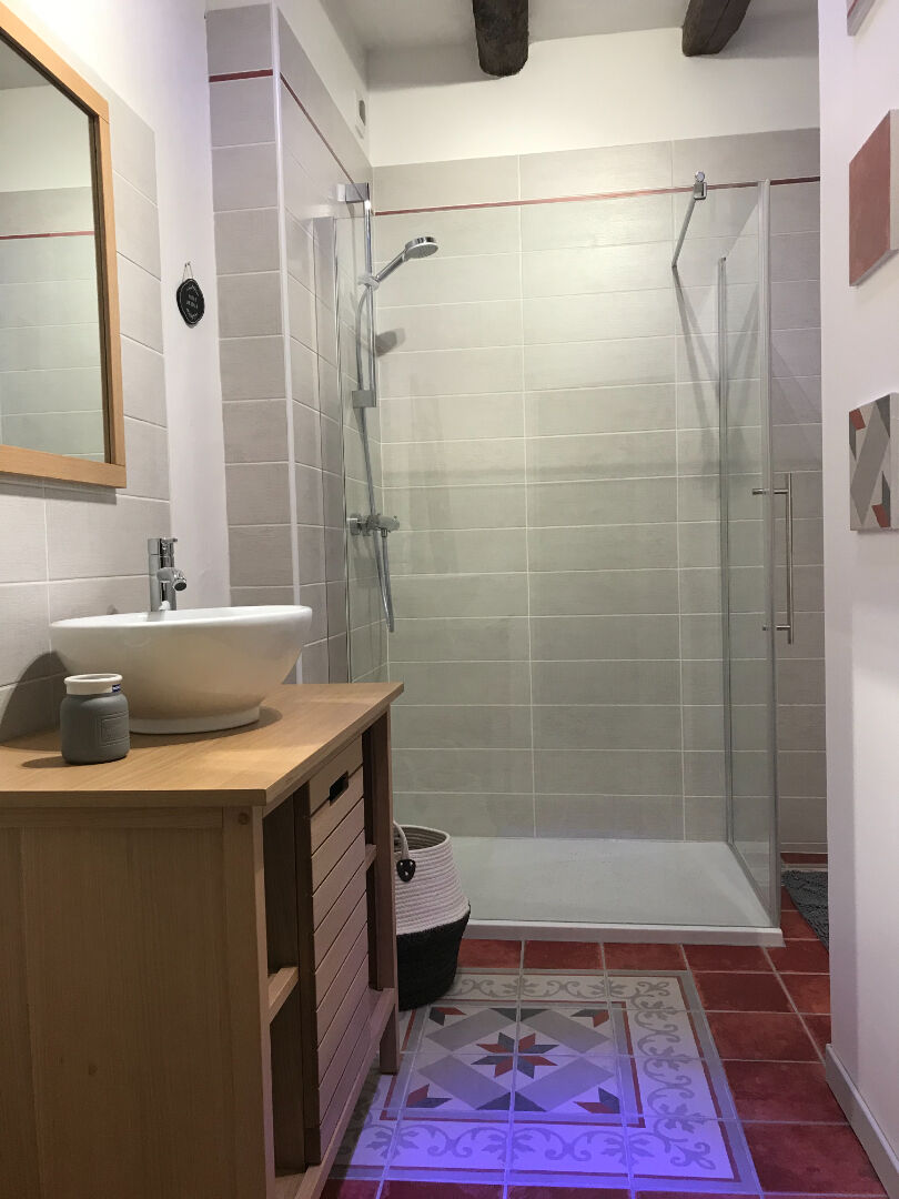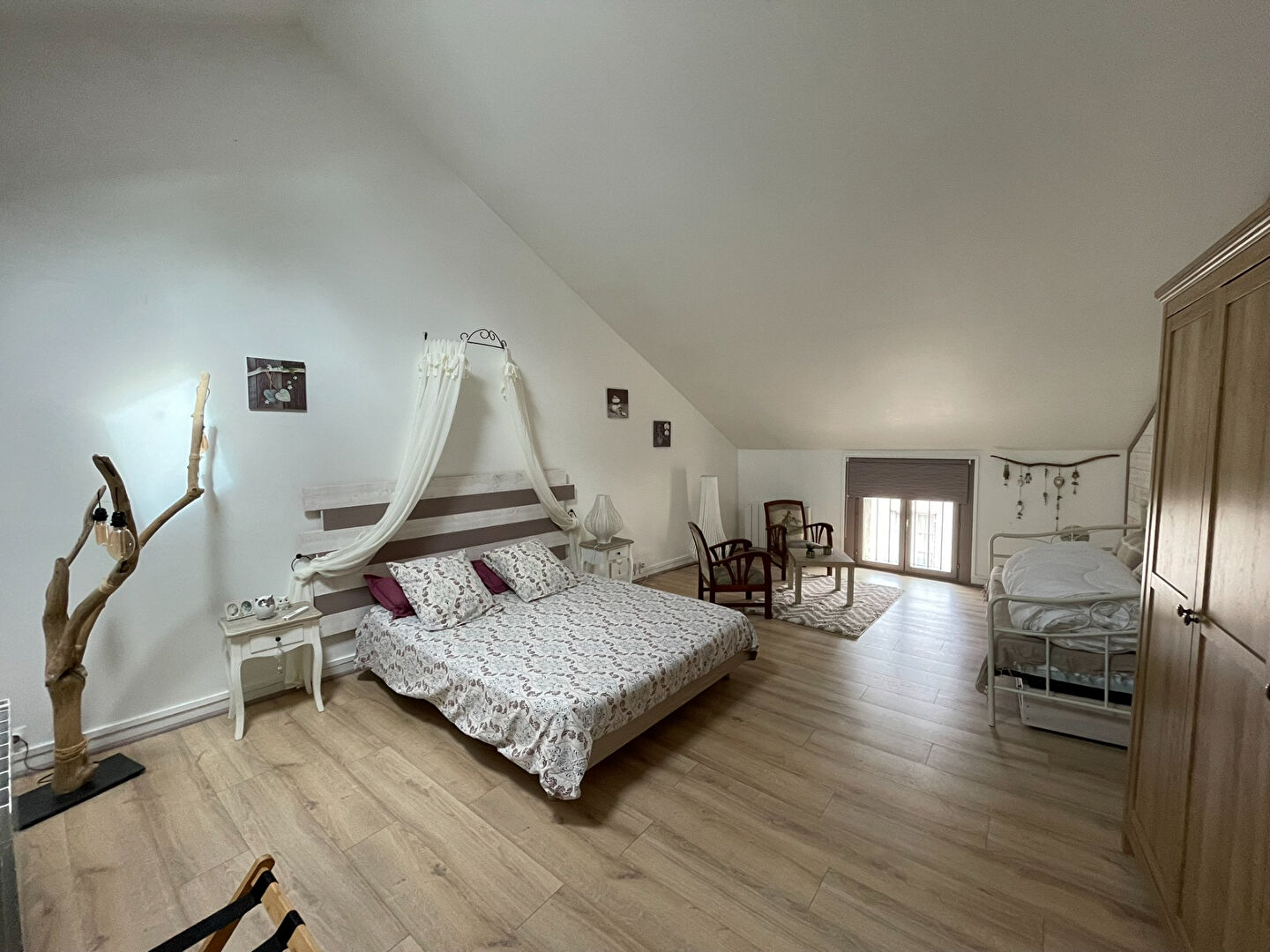 Elle se compose tout d'abord d'une vaste pièce de vie avec poêle à granulés, un cellier et une vaste cave de 32m². Au premier étage se trouve une jolie cuisine aménagée et équipée donnant accès à la terrasse ombragée, salon avec cheminée et salle d'eau avec toilettes. Au dernier étage un palier mène à deux chambres dont l'une fait 27m² !