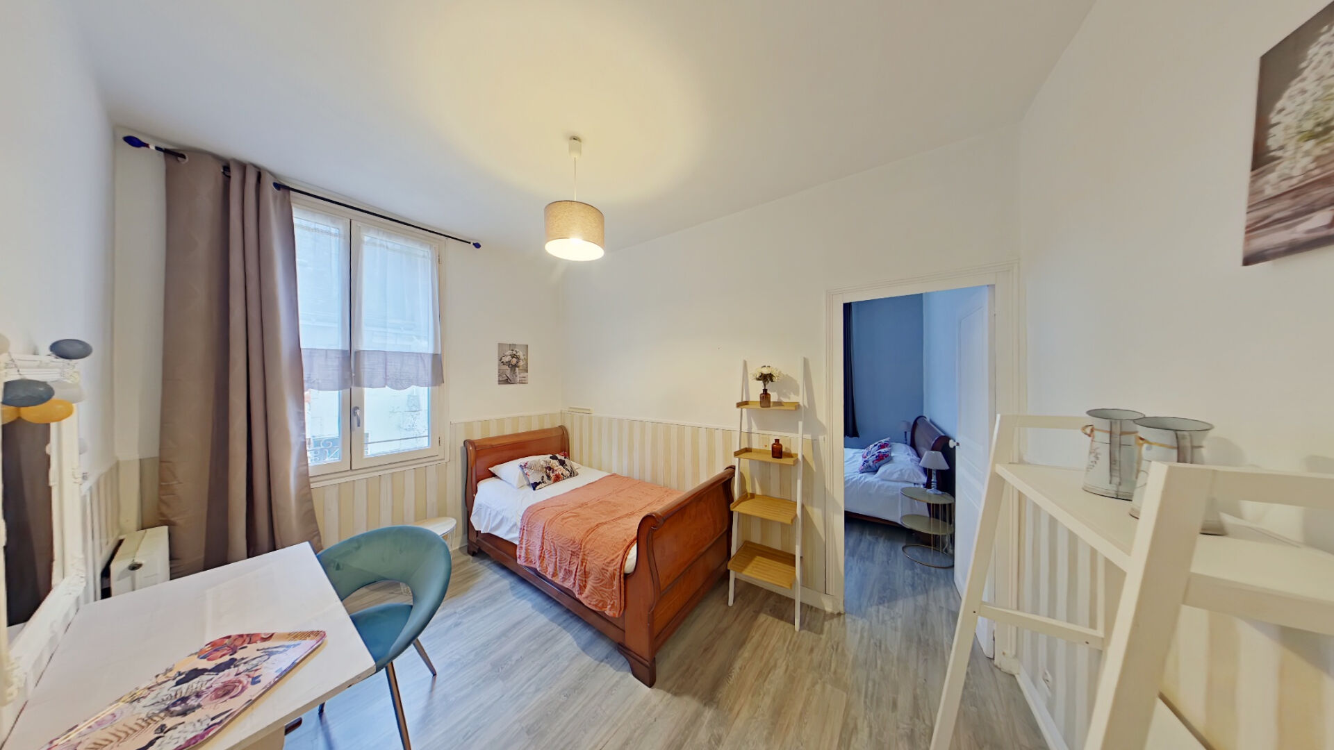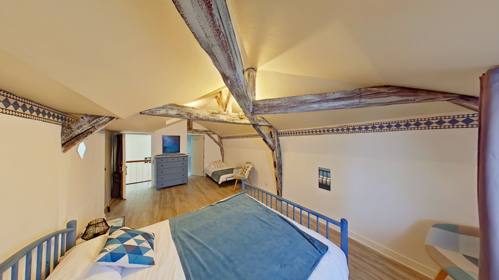 Au deuxième étage, deux chambres, dont l'une bénéficie d'une salle de bains privative.