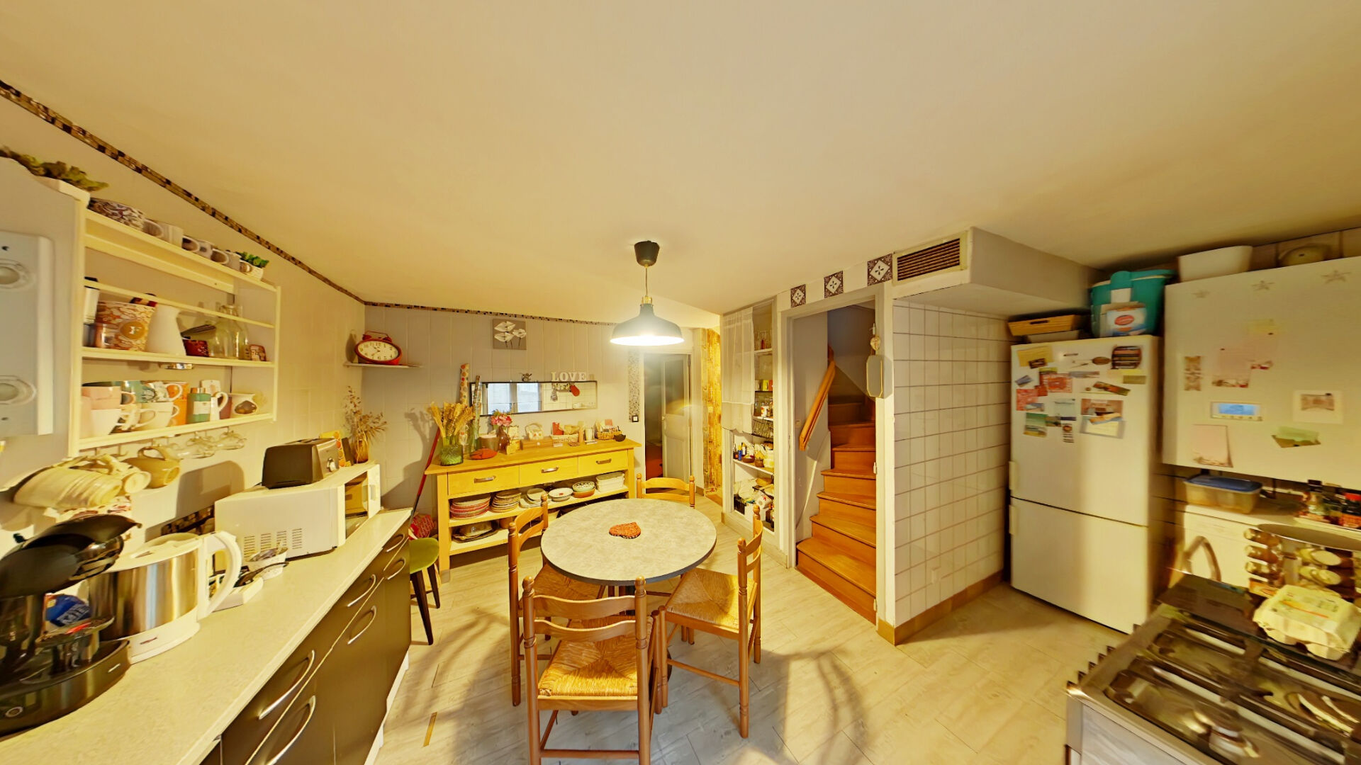 Au premier étage, une cuisine aménagée et équipée qui donne accès sur un spacieux salon, propice à la convivialité.