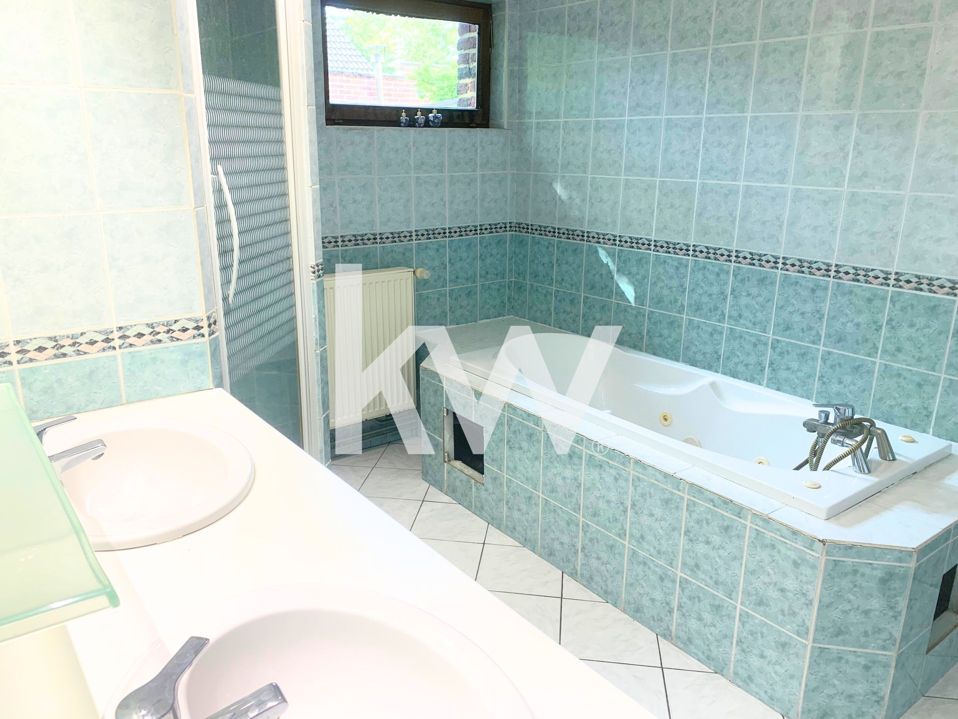 Salle de bain spacieuse et fonctionnelle : baignoire balnéo, douche, double vasque